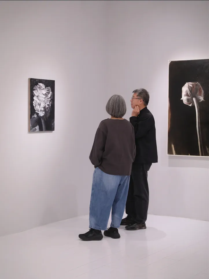 在您的作品中,“白色”超越了单纯的色彩,成为一种重要的意象(如“白色物”系列中的花朵)。您也曾专门研究过白色在现代绘画中的运用。在您看来,白色所特有的视觉质感(例如它的“软”与“硬”、“轻”与“重”),是如何与您作品中关于生命、呼吸乃至“不可见的精神”这些主题发生共振的?