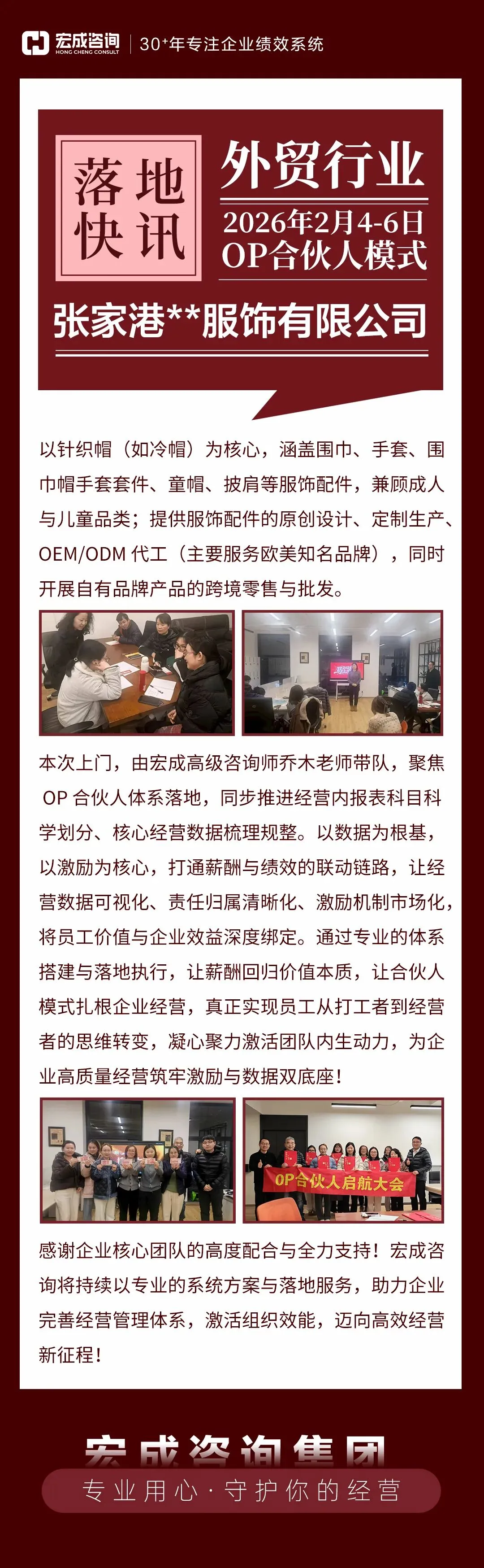 案例分享:近期外贸服装行业企业落地OP合伙人模式~