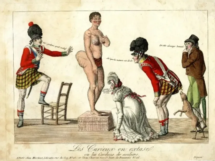 很多人都去过动物园,见过动物园里的各种动物,它们被关在拥挤的空间里被游客们参观。如果人类也被当成了一种“稀有动物”而被关进了动物园展览参观,那是一种什么样的情景?这并不是一种假想,而是历史事实,人类动物园不仅存在过,而且自大航海时代就出现在了西方,持续到1958年才被关门。15世纪大航海时代降临后,欧洲船队从新大陆带回了各种奇珍异兽和稀世珍宝,并专门修建了收藏馆和动物园进行了展示。但被展示的并不仅仅只有美洲野牛和非洲大象,一些肤色和装扮明显异于欧洲人的土著居民也被抓来展览,充当藏品。意大利红衣主教伊波利托·德·美第奇对收藏这些土著居民非常迷恋,在教廷所在的宗教圣地梵蒂冈创办了最早的人类动物园,把他口中的“野蛮人”关押在一起,其“收藏”的人类超过20个种族。这种风气慢慢的在欧洲形成了一种潮流,越来越专业的人类动物园出现了,全球到处搜集“稀有”人类来供欧洲的老百姓们参观,满足他们的猎奇心理。这些被圈养的土著被打上各种标签进行介绍,如:种族、产地、特征、习性等,和你今天在动物园看猴子时旁边的标签是一样的。1808年,马戏团老板曾经在接受采访时说,观众们最喜欢看的土著人是患有白化病的黑人。南非女土著萨拉(莎拉•巴尔特曼),两个孩子夭折,父亲和丈夫被殖民者杀害,于1810年被殖民者抓到了英国伦敦,充当稀有物品进行展出,因为她有一个极其罕见的巨大臀部。在公开展出时,萨拉被安置在约1.5米高的兽笼里,全身几近赤裸以吸引当地人围观,额外购买了“摸臀券”的游客还可以任意触摸她的臀部,有时候她还会被带到贵族们的高端宴会上,成为活的观赏物,和那些奇珍异兽没什么区别。在失去了新奇感后,1814年9月,萨拉被卖给了法国的一个驯兽师,和一些野兽一起在法国各地进行巡游展览。赚了最后一笔钱后,吸引不到游客买票的萨拉被卖到了红灯区开始榨取其最后价值。1816年,身染重病的萨拉在法国巴黎凄惨死去,死时年仅26岁。在萨拉死后,她的尸体被卖给了法国科研机构,换到了最后一笔钱。科学家居维叶对萨拉进行了解剖,切除了其大脑和生殖器,制作成了标本,解剖报告发表在1817年的文集《自然历史博物馆回忆录》中,论文给出的结论是:她是属于动物和人类之间的物种,通过她可以证明非洲人性欲过剩以及劣等