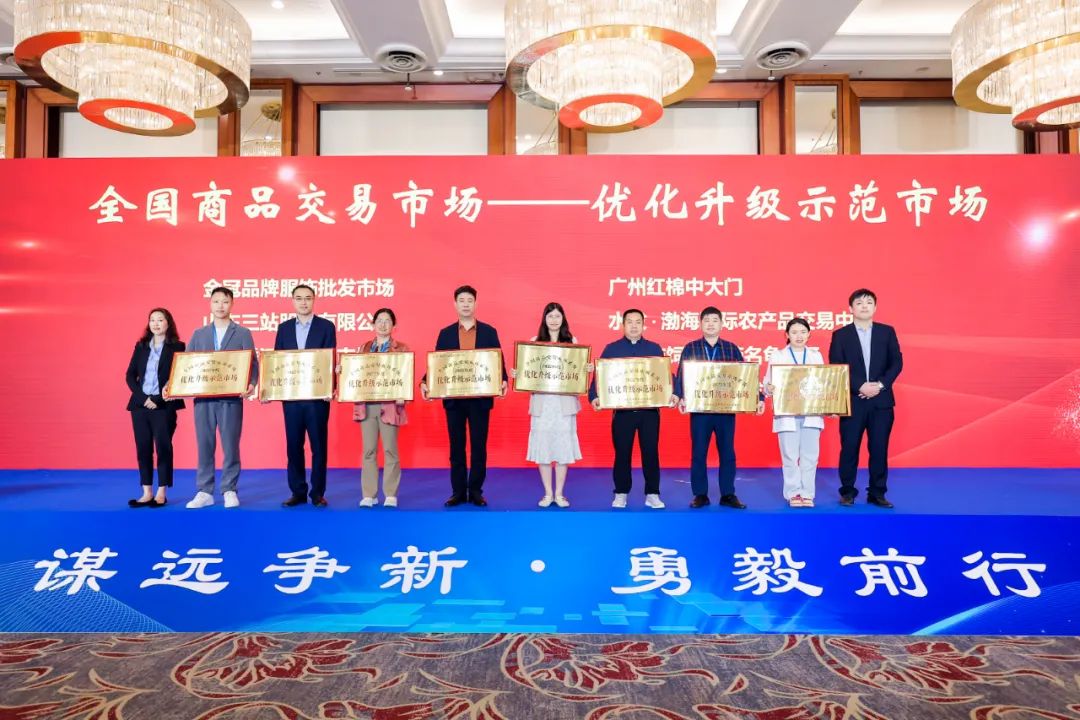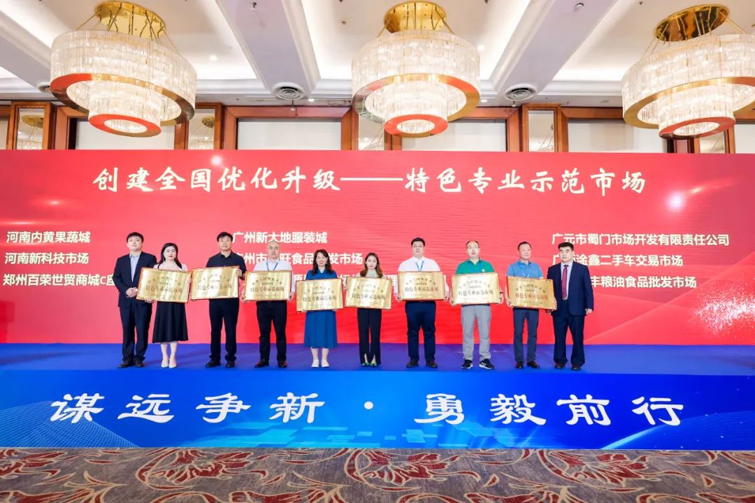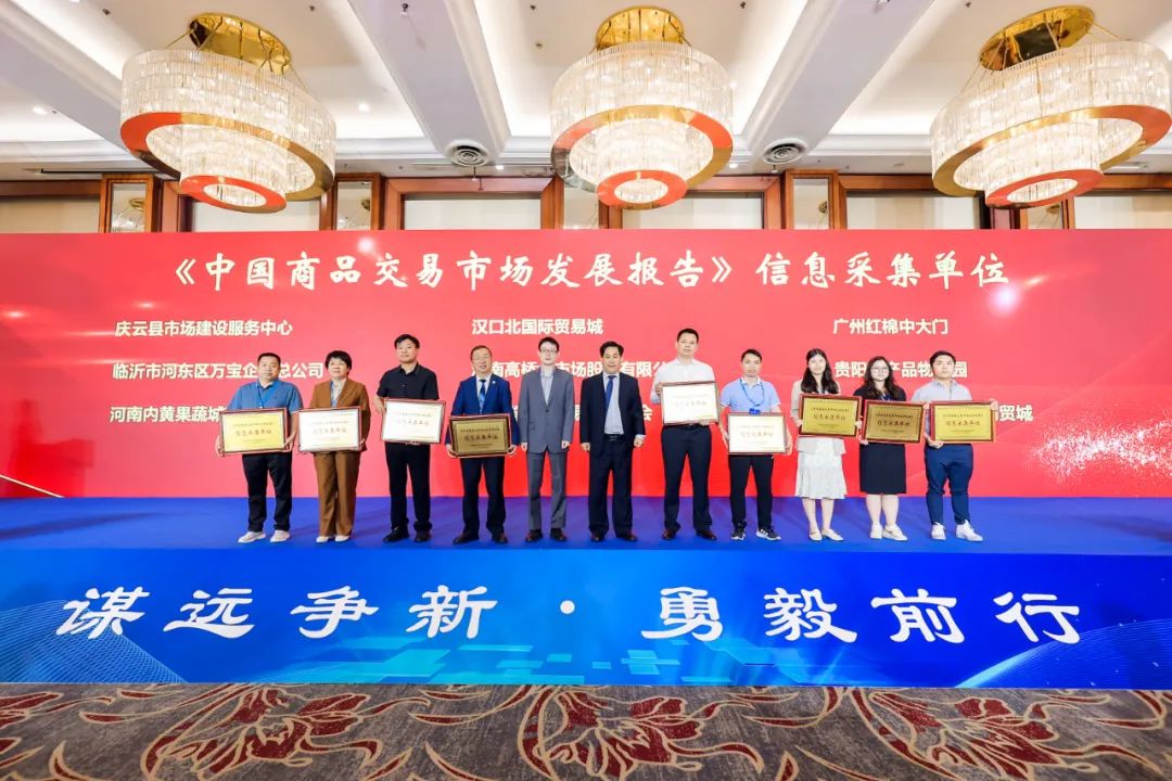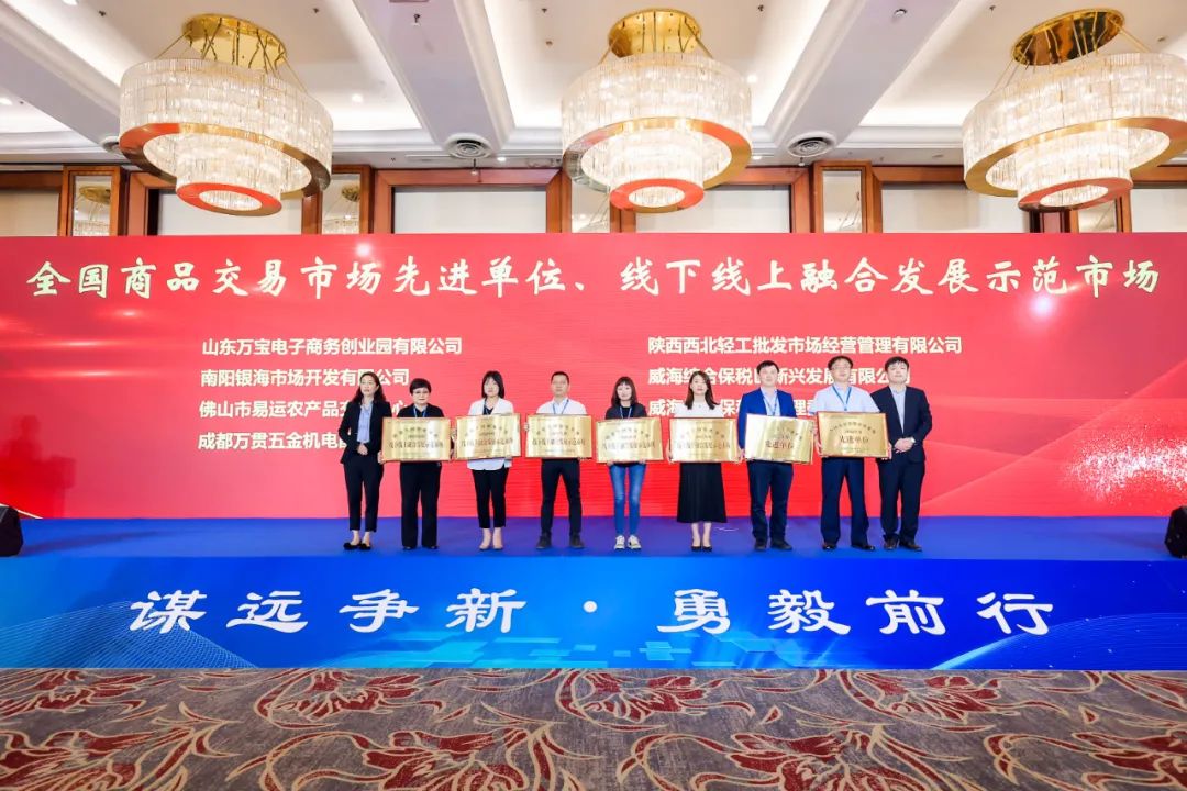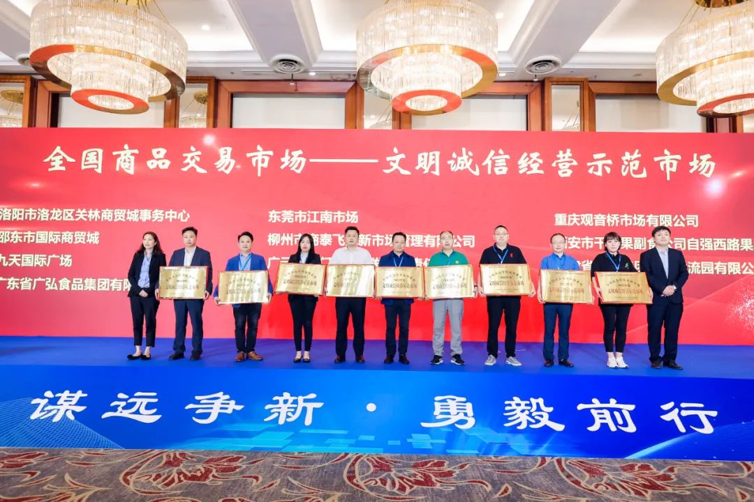 大会对《中国商品交易市场发展报告》及全国商品交易市场最具影响力人物、文明诚信经营示范市场、内外贸融合发展示范市场、优化升级示范市场、最具影响力市场、最具发展潜力市场、人才培育基地、品牌商品供应基地、文明诚信经营示范商户、金牌批发商、畅销品牌等先进典型进行了表彰。会上,我会被授予《中国商品交易市场发展报告》信息采集单位。部分会员企业荣获2022年度全国商品交易市场系统相关荣誉,他们分别是:广州市东旺食品批发市场、广州市星洲源果品市场经营管理有限公司、东莞市莞城细村农贸综合市场经营管理有限公司荣获“创建全国优化升级特色专业示范市场”;广东省广弘食品集团有限公司、东莞市江南市场经营管理有限公司荣获“全国商品交易市场文明诚信经营示范市场”;广东安华美博经济发展有限公司、东莞市信立实业有限公司荣获“全国商品交易市场著名品牌市场”;广州白马服装市场有限公司荣获“全国商品交易市场品牌商品供应基地”;广州红棉中大门荣获“全国商品交易市场优化升级示范市场”;佛山中南农产品批发市场荣获“全国商品交易市场文明诚信经营示范市场、最具影响力市场”;佛山市易运物流市场开发有限公司荣获“全国商品交易市场先进单位、线下线上融合发展示范市场”。