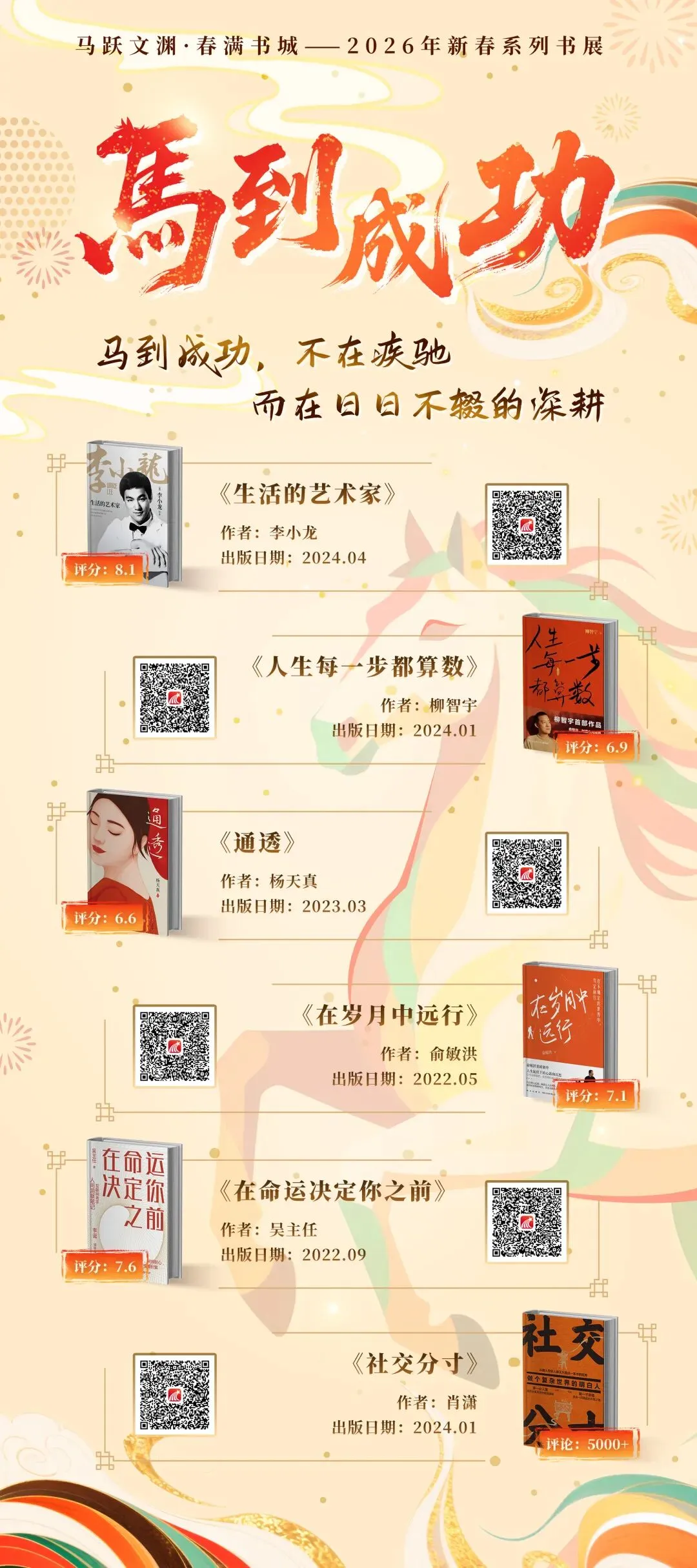 四字千钧,阅尽人间万象。本书展以“马”为引,撷取“天马行空” “金戈铁马”等十三个成语,对应十三幅展图。每则成语下遴选契合 好书——从梁漱溟、吕思勉、林语堂等的沉静著述,到朱天心、陈果、杨天真等的当代记录,涵盖小说、传记、历史、情感等诸多领域。春节之际,让成语化作阅读入口,使古老辞章照见今日人间:其中有家国风云,亦有烟火闲情,于四字之中,见天地,见众生。