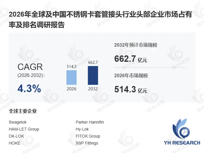 以下内容来自恒州诚思YHResearch出版的《2026年全球及中国不锈钢卡套管接头行业头部企业市场占有率及排名调研报告》,同时提供英文,日文,韩文等不同语种版本报告。