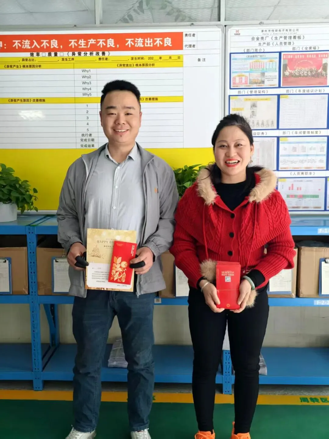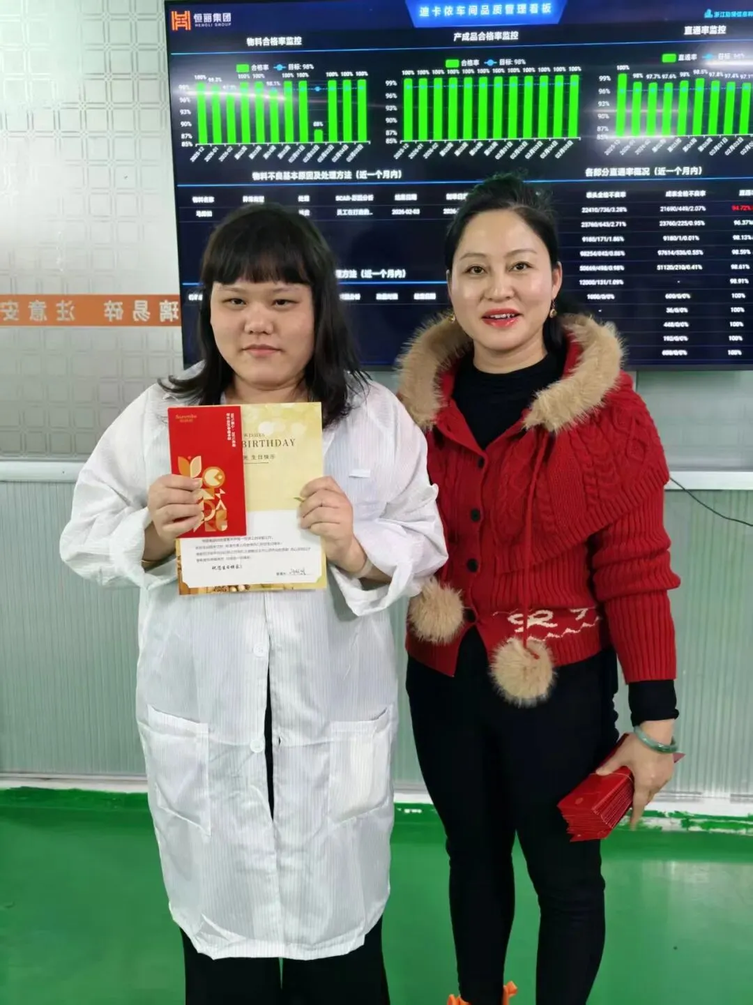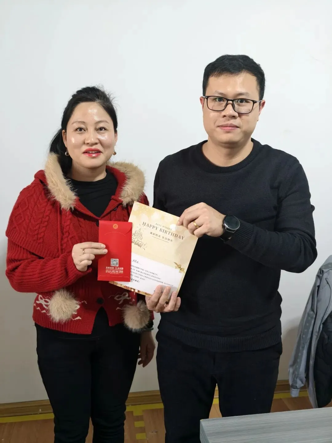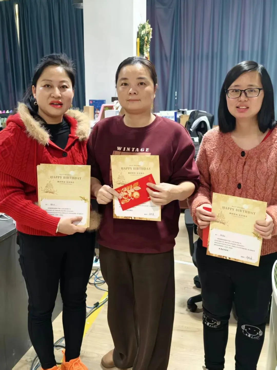 在机器运转的间隙,在质量管理看板前,在繁忙的生产车间里,二月的生日祝福如期而至。一张张灿烂的笑脸,被金色的“HAPPY BIRTHDAY”贺卡和暖心的红包点亮。我们见证的,不仅是岁岁年年的成长,更是每一天并肩奋斗的情谊。