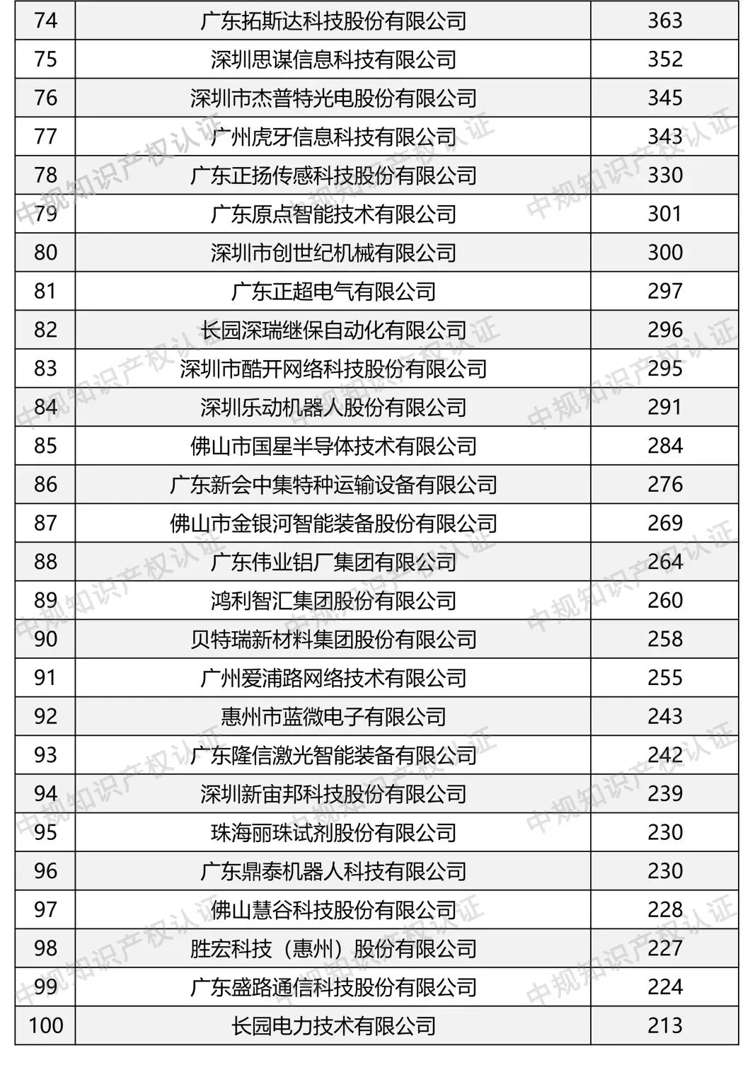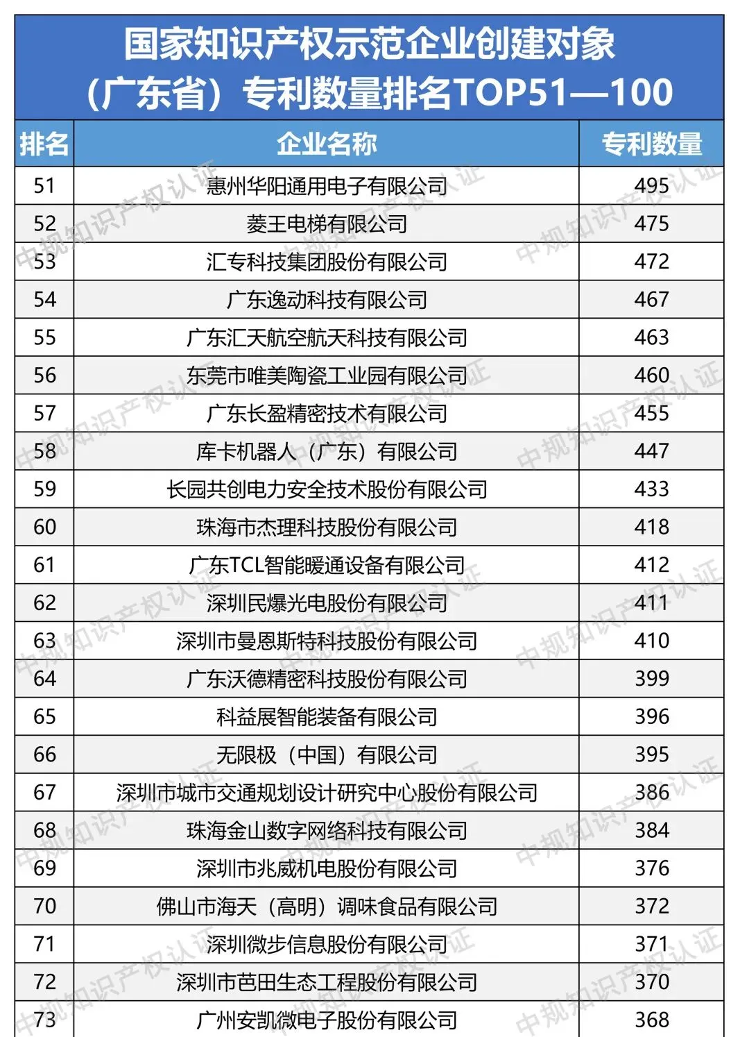 行业榜单 | 国家知识产权示范企业创建对象(广东省)专利数量排名TOP1—50