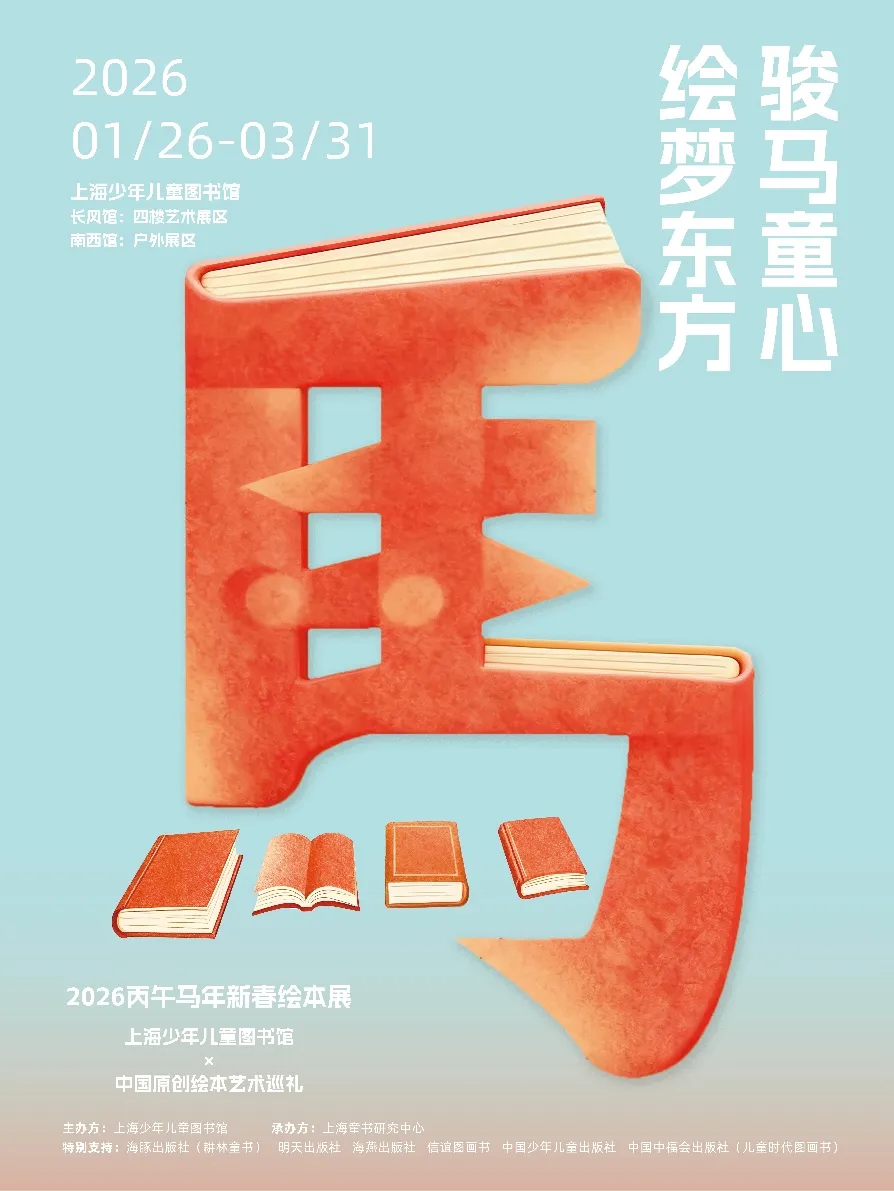值此丙午马年新春之际,上海少年儿童图书馆特别策划“骏马童心·绘梦东方”新春绘本展。以六本中国原创绘本为灵感,将六匹灵动骏马化为成长伙伴。不止于展区,更自然融入长风馆与南西馆的阅读空间,让阅读与美育在每一次驻足与翻页间温柔发生。