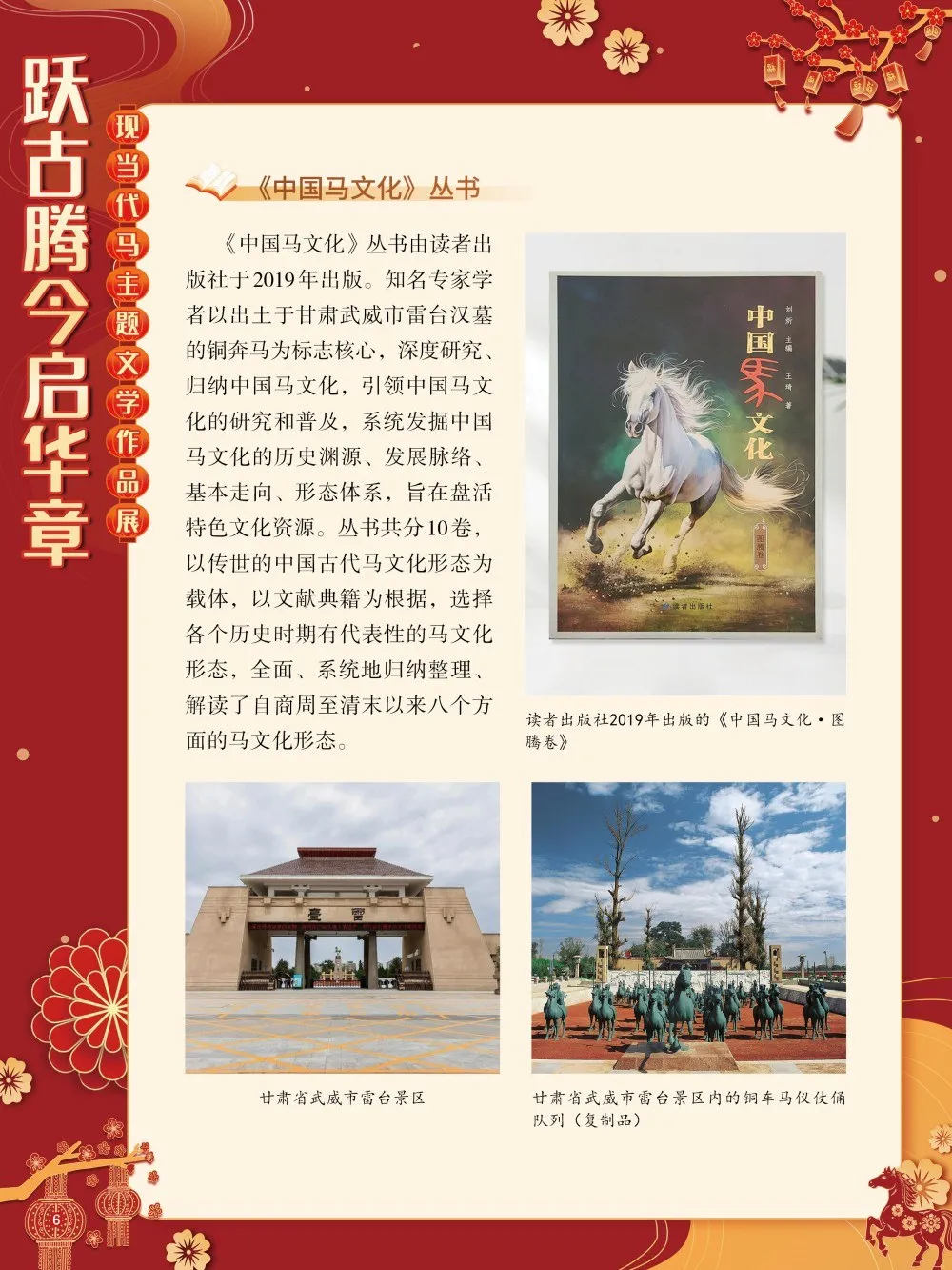 在现当代文学中,马的形象被赋予了更深层次的哲思与情感。它作为生命个体、精神图腾和情感载体,在广阔的文字世界里奔腾不息。“跃古腾今启华章——现当代马主题文学作品展”以马为线索,汇集现当代文学作品,带领大家一同走进这片文学的草原。愿马蹄的每一次腾跃,都能激发我们对生命的热爱与对自由的向往,引导我们感悟马的文化魅力,开启一段新的华彩篇章。