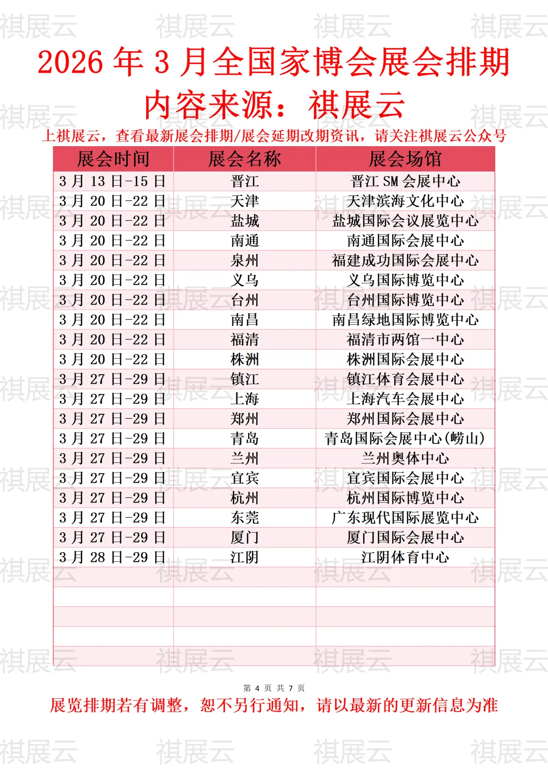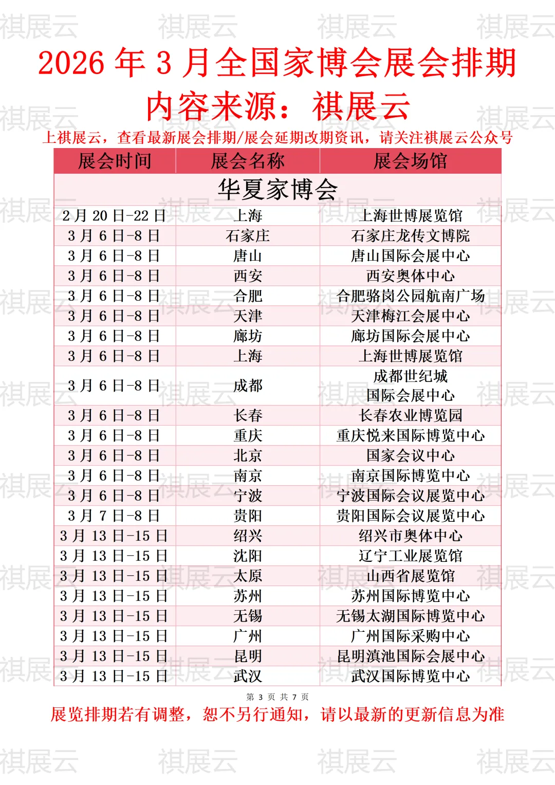 会展资讯丨华夏家博会2026年3月展会排期时间表