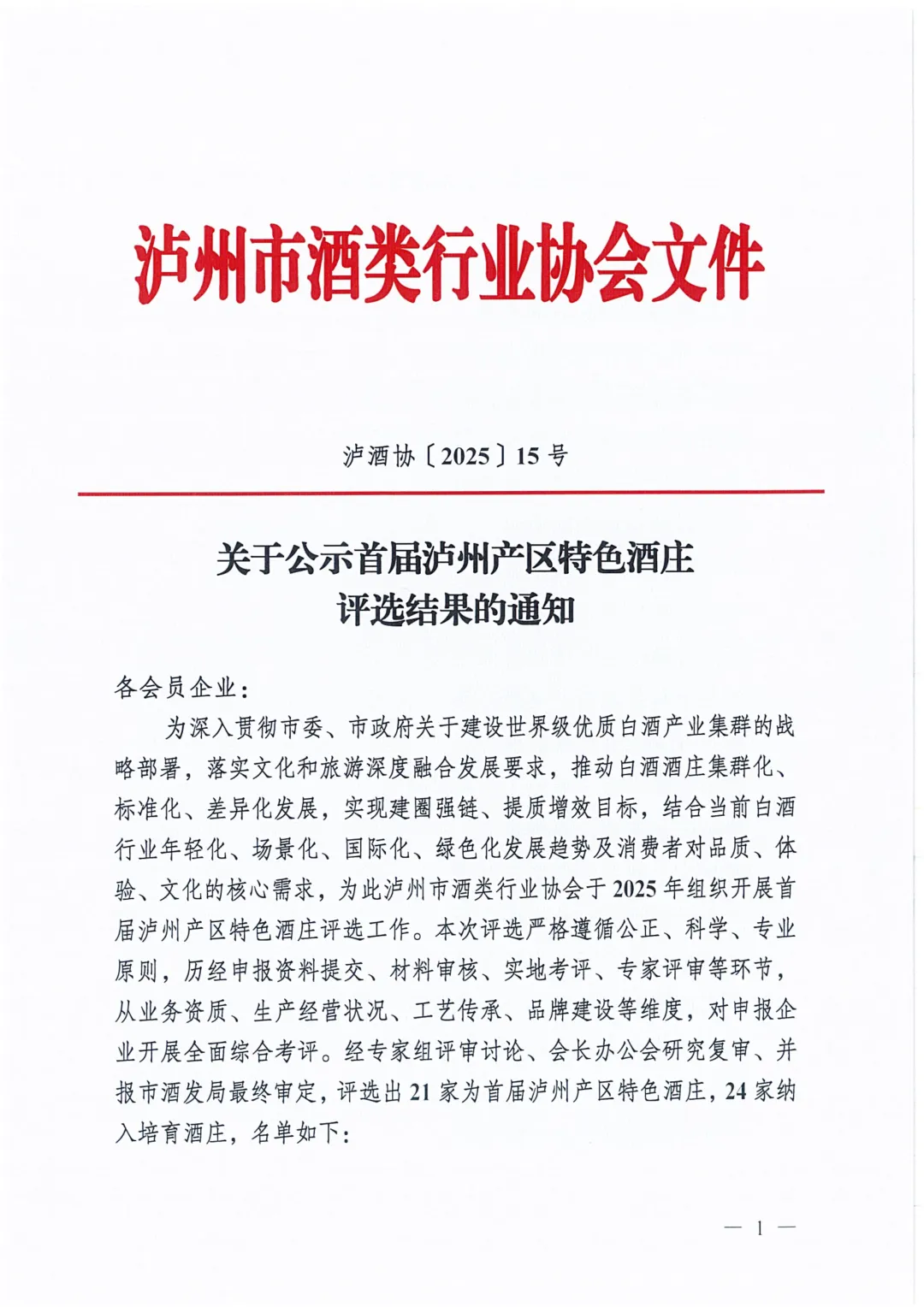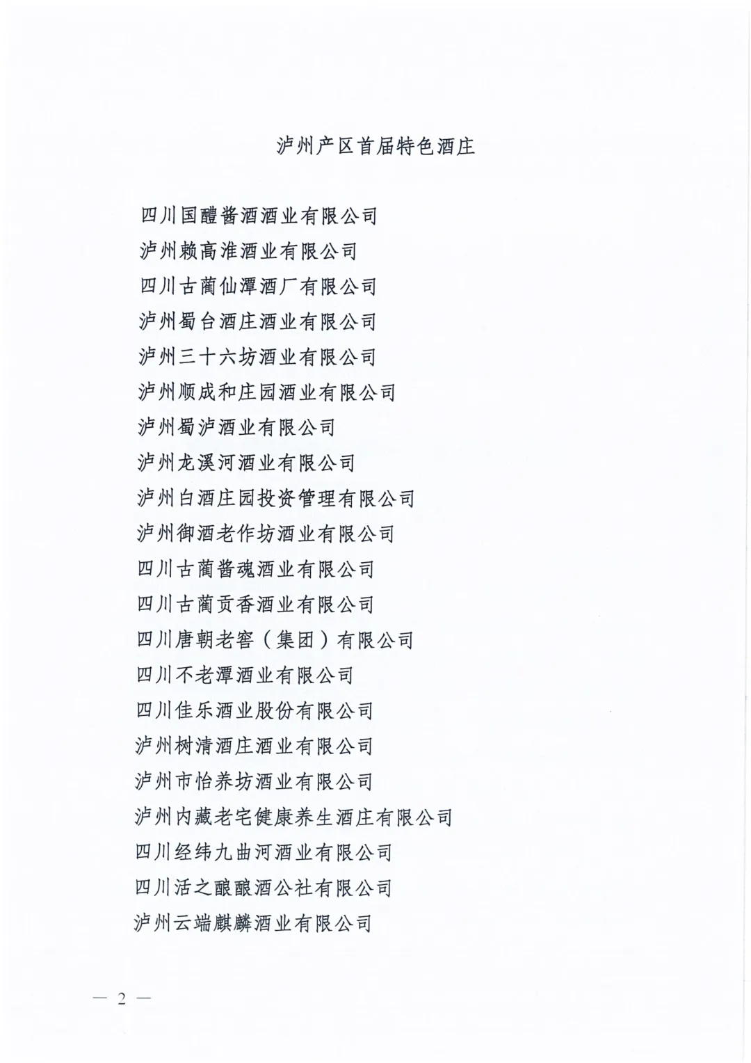 泸州市酒类行业协会关于公示首届泸州产区特色酒庄评选结果的通知