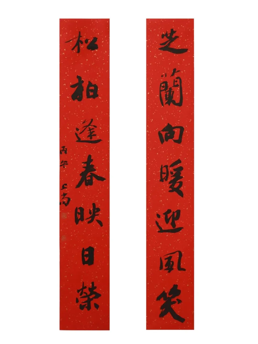 释文:芝兰向暖迎风笑;松柏逢春映日荣。