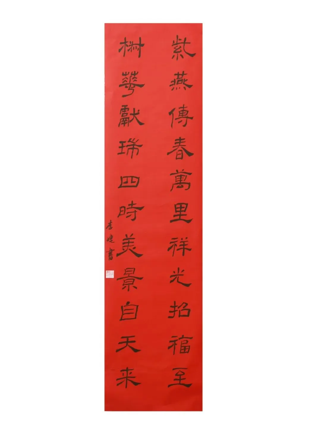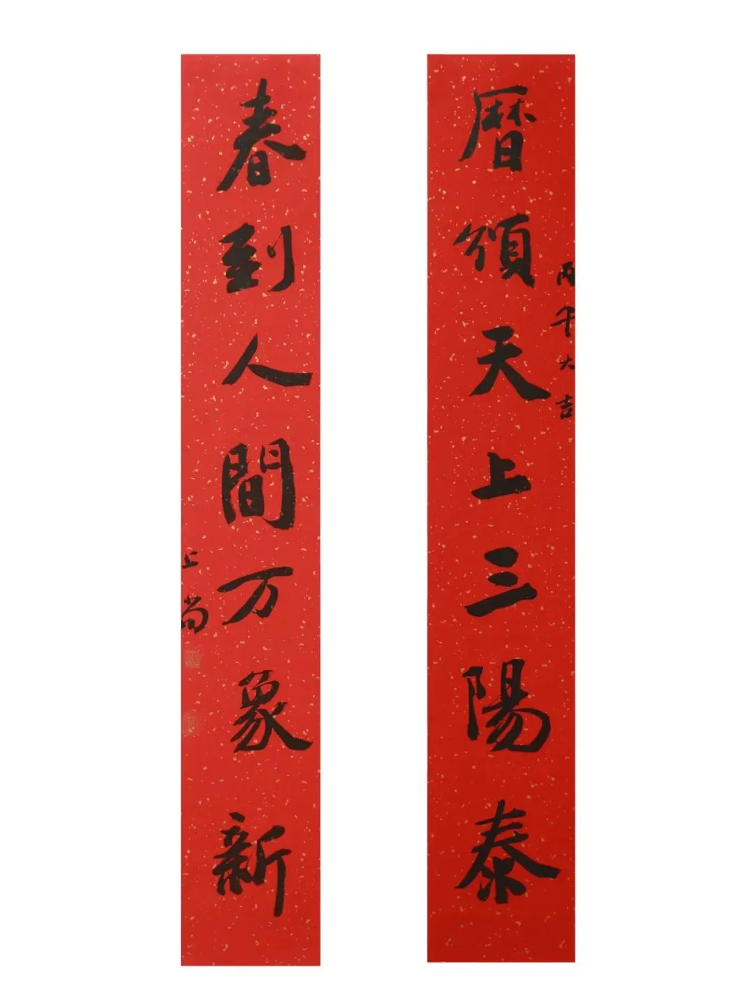 释文:历颁天上三阳泰;春到人间万象新。