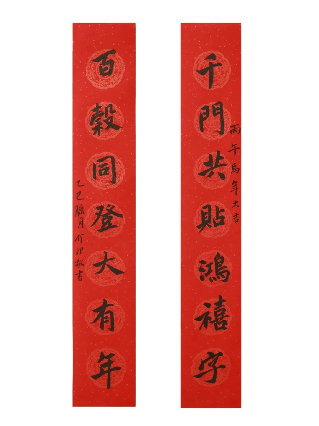 释文:千门共贴鸿禧字;百谷同登大有年。