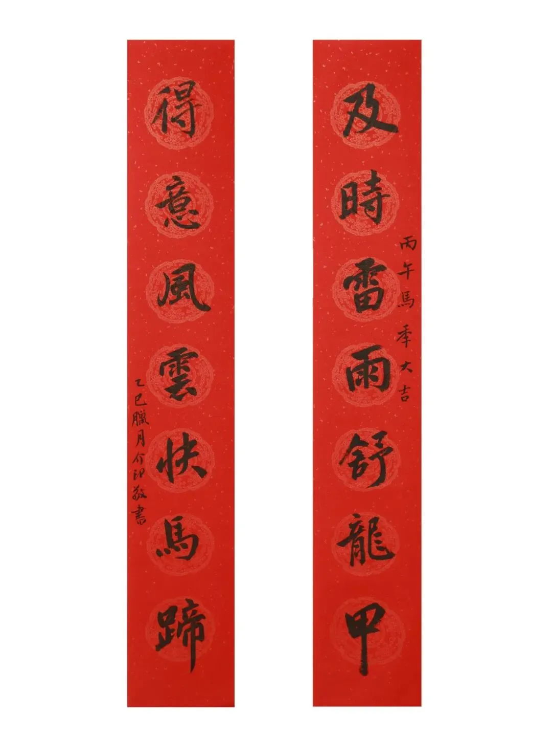 释文:及时雷雨舒龙甲;得意风云快马蹄。