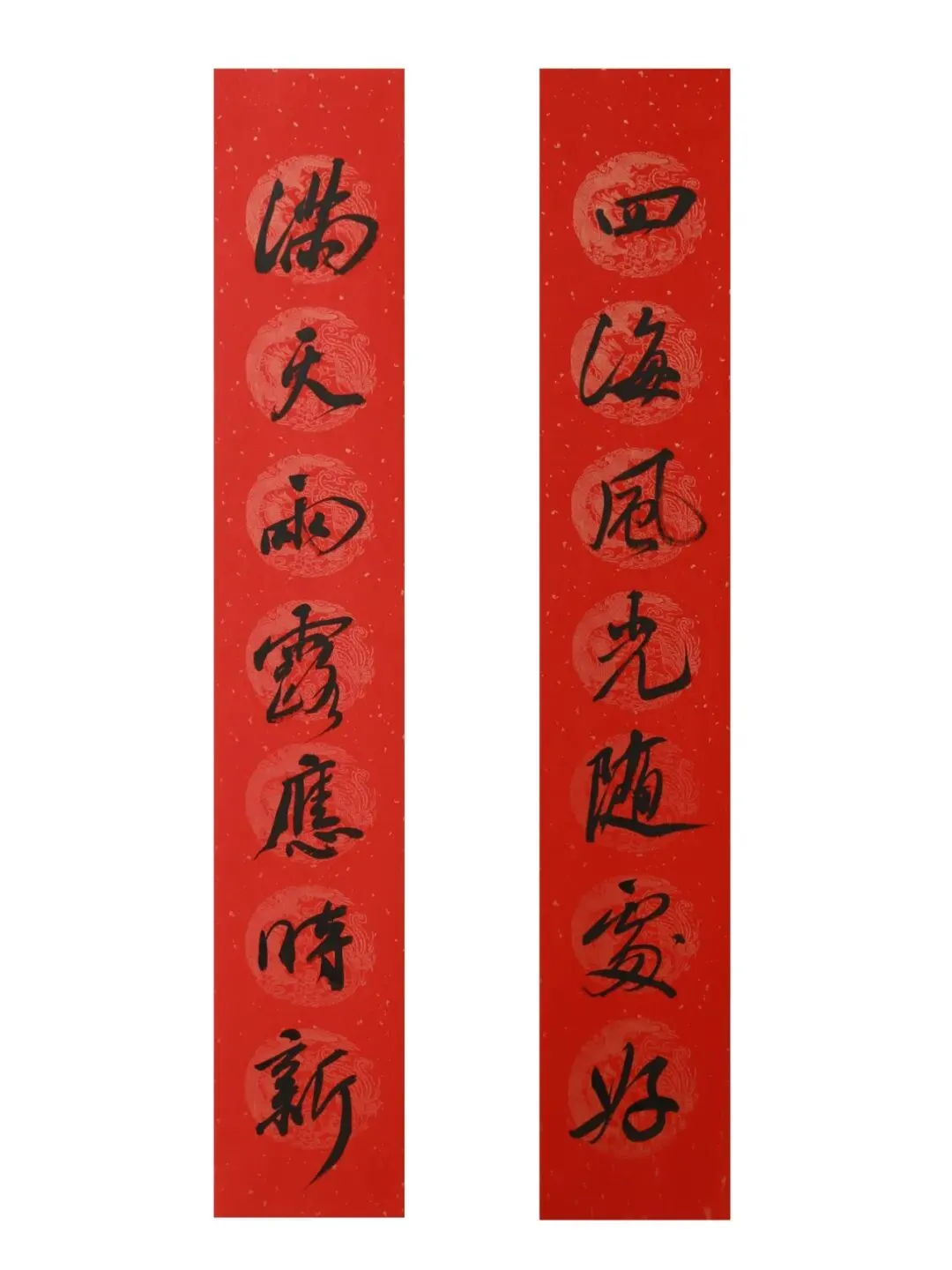 释文:四海风光随处好;满天雨露应时新。