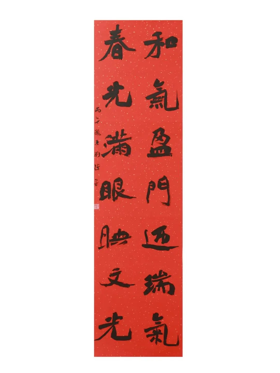 释文:和气盈门迎瑞气;春光满眼映文光。