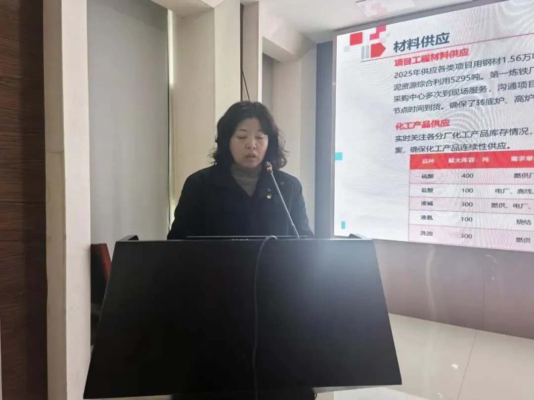 燃料室、原料室、废钢室、材料室、设备备件室、综合结算室以及项目组对2025年度的工作总结以及2026年的工作计划分别进行了汇报。