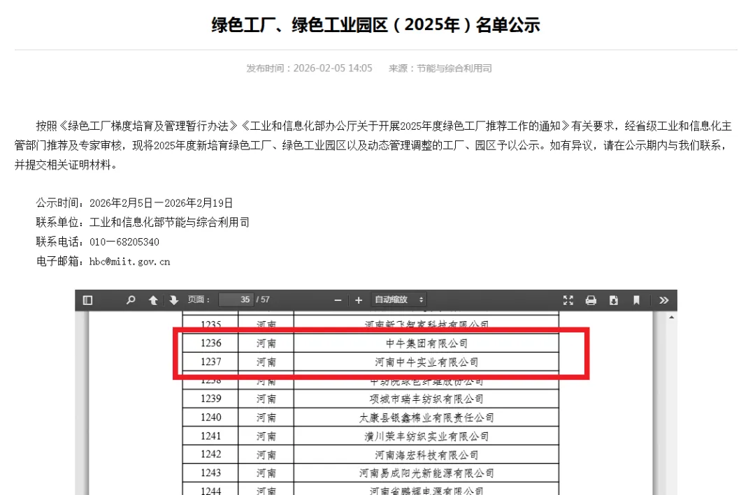 近日,工业和信息化部对绿色工厂、绿色工业园区(2025年)名单进行了公示,我省中牛集团有限公司和河南中牛实业有限公司凭借坚定的绿色生产理念、扎实的创新实践和显著的环保成效,成功斩获“国家级绿色工厂”称号!这份由工信部组织评选的全国性荣誉,是对企业践行绿色发展、履行社会责任的高度认可,更是企业打破制革行业“高污染”刻板印象、引领行业绿色转型的有力佐证。