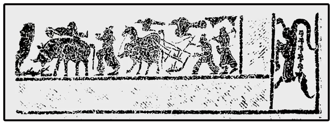 山东滕州汉画像石馆藏 东汉祠堂画像石 牛、马耕田图