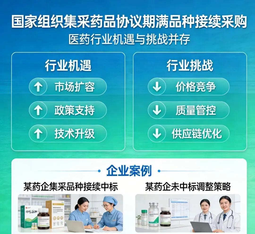 昨日,广东省医保局公布国家1-8批协议期满品种接续采购拟中选结果,从公布的药品拟中选企业名单来看,涵盖了精神类、抗感染、心血管、抗肿瘤等多个治疗领域,涉及近300家制药企业、上百个药品品种,既呈现出医药行业集中化、规范化发展的必然趋势,也暗藏着医药工业、医药商业全链条的重构机遇与生存挑战。集采作为医药行业市场化改革的核心抓手,正在重塑行业竞争规则,倒逼企业从规模扩张向质量提升、从同质化竞争向差异化发展转型,无论是中标企业还是未中标企业,都需在变革中找准定位、主动破局。一、集采背景下医药行业全链条的机遇与挑战