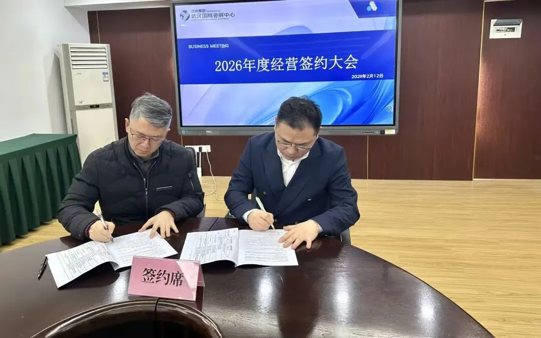2 月 12 日,武汉国际会展中心 2026 年度经营签约大会顺利召开。会议全面总结 2025 年度经营业绩,明确 2026 年工作要求与重点任务,锚定发展方向,以突破拓新局、创新赋动能。