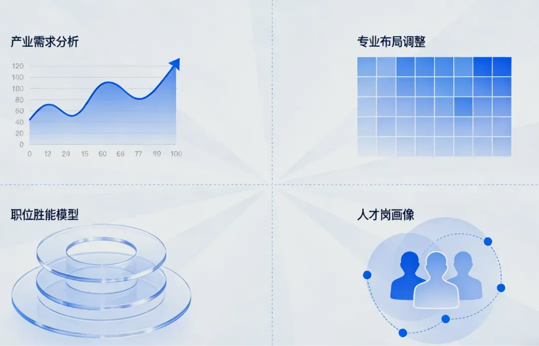 专业建设依托产业需求分析,动态调整专业布局,构建岗位胜任模型与人才画像,实现精准人岗匹配,助力院校人才培养提质增效。