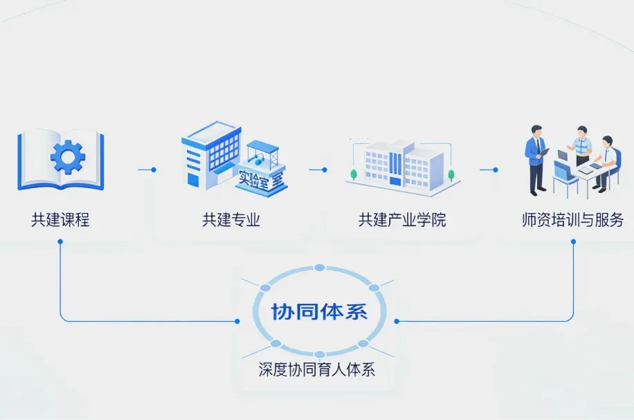 产教融合通过共建课程、共建专业、共建产业学院,同步开展师资培训与服务,构建深度协同的育人体系。