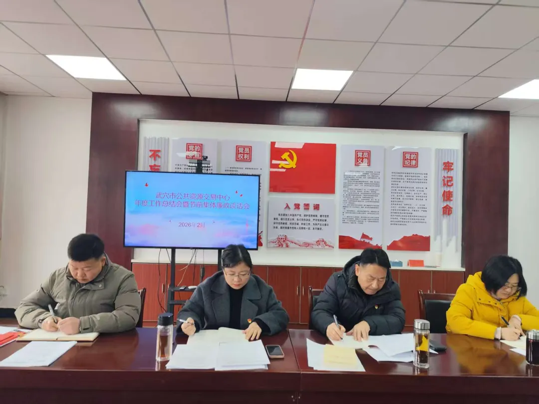 2月11日,武穴市公共资源交易中心召开2025年度工作总结会暨节前集体廉政谈话会。会议全面复盘全年工作成效,系统部署2026年重点任务,并对春节期间廉洁安全作专题警示。中心党组书记、主任邓艺出席会议并讲话,党组成员、副主任韩劲松主持会议,中心全体干部职工参会。