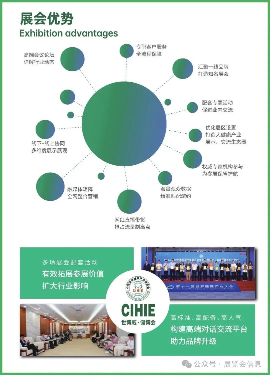 中国国际健康产业博览会(简称"CIHIE健博会"),是经商务部批准报备的大健康行业主题展会。CIHIE健博会始创于2003年"SARS"之后,2004年5月在北京首展举办,截止目前已成功举办了34届,被业界广泛誉为大健康行业发展的"晴雨表",备受业内领导、专家、企业、客商的高度认可和一致好评,连续多年被商务部评定为"全国重点引导支持展会"品牌项目。