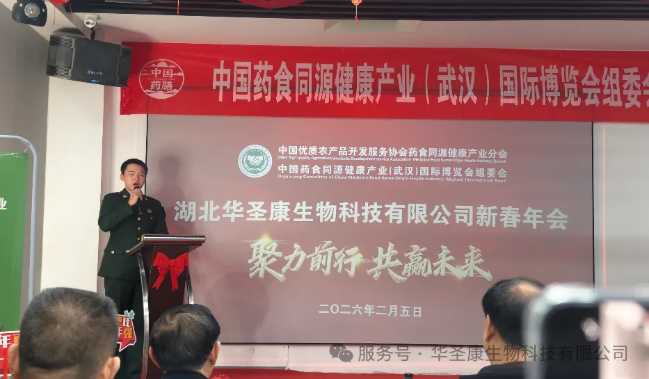 春潮涌动,万象更新。2026年2月5日,中国药食同源健康产业(武汉)国际博览会组委会新春年会在武汉隆重召开。来自行业协会、领军企业、科研机构等各界代表齐聚一堂,共同展望产业发展前景,凝聚行业奋进力量,为2026年4月即将在武汉国际博览中心举办的行业盛会奏响序曲。