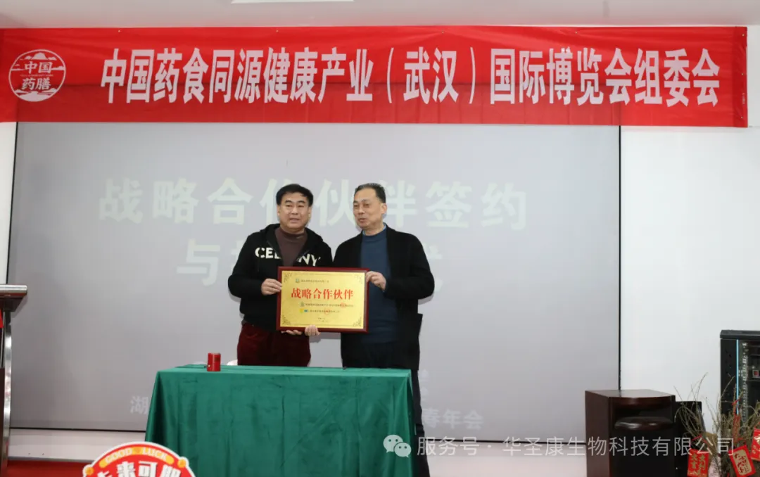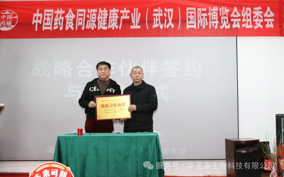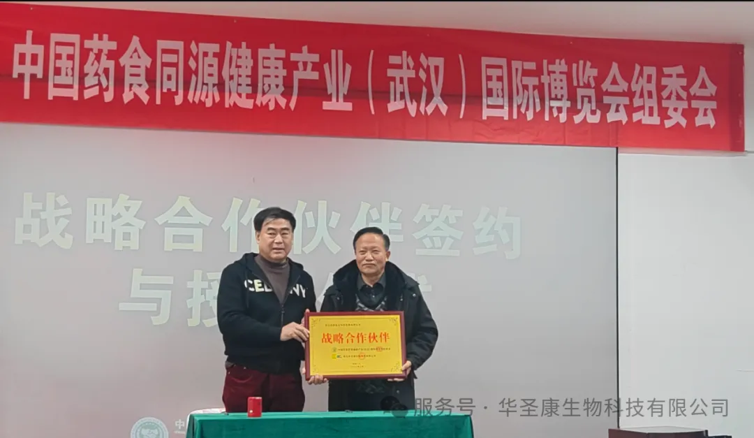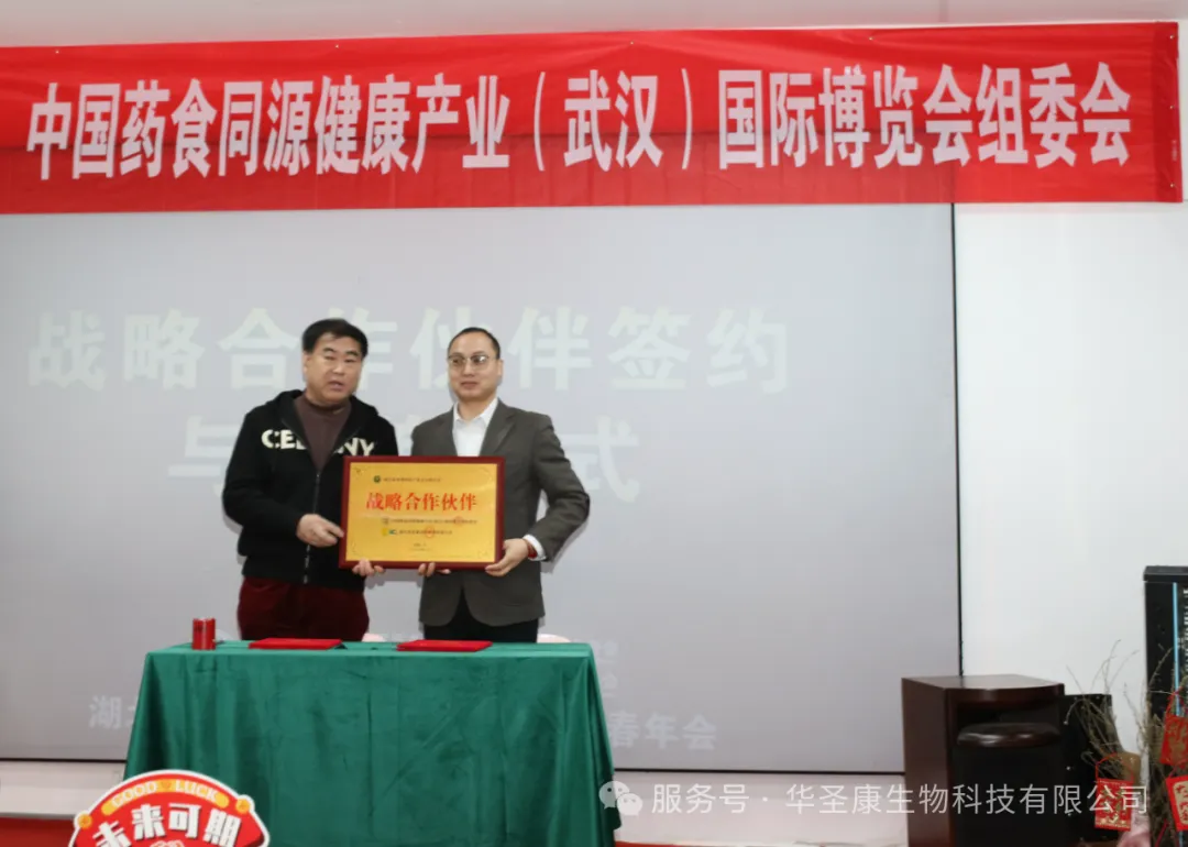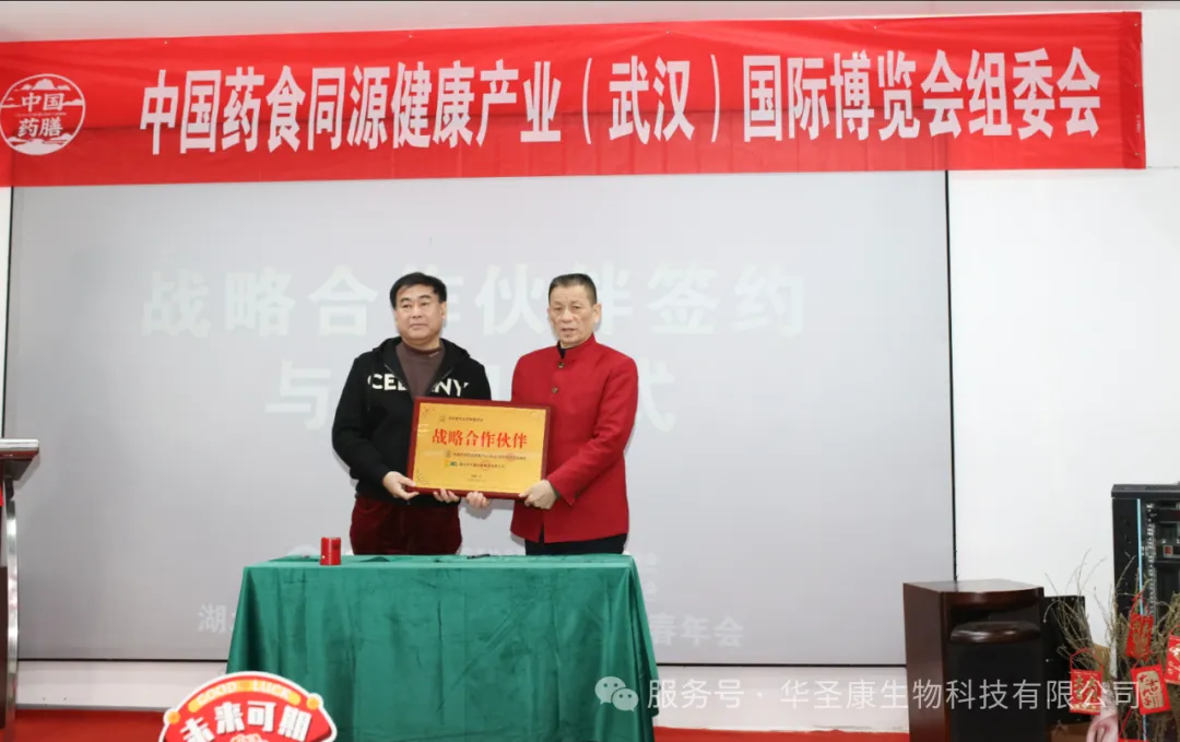 现场举行了隆重的战略合作签约授牌仪式。湖北华圣康生物科技有限公司董事长司正军代表组委会,向湖北省民营经济研究会、湖北省地理标志产品企业联合会、湖北中医一家人联盟、中国食文化河鲜委员会、中国旅游饭店烹饪协会药膳康养专委会、武汉头等舱科技股份有限公司、湖北将军红酿酒有限公司等来自省内外的十余家机构授予“战略合作伙伴”牌匾。此举标志着博览会产业协作网络进一步夯实,各方将围绕资源对接与平台共建展开深度合作,携手助力展会圆满成功。