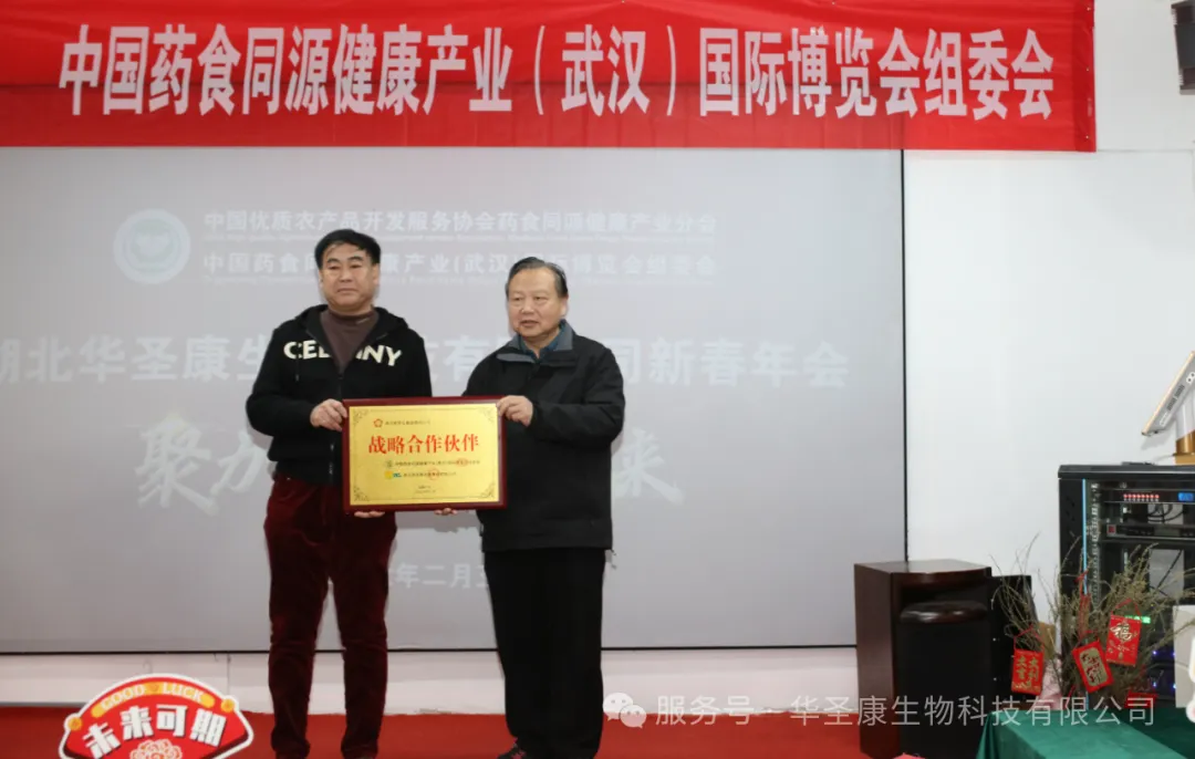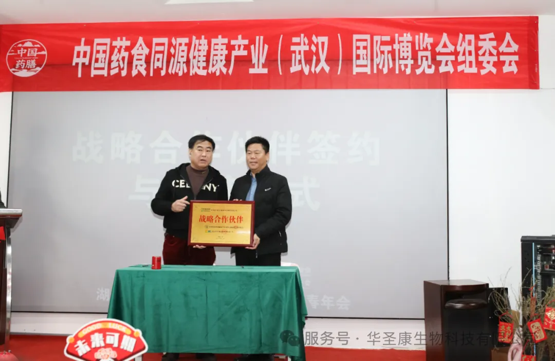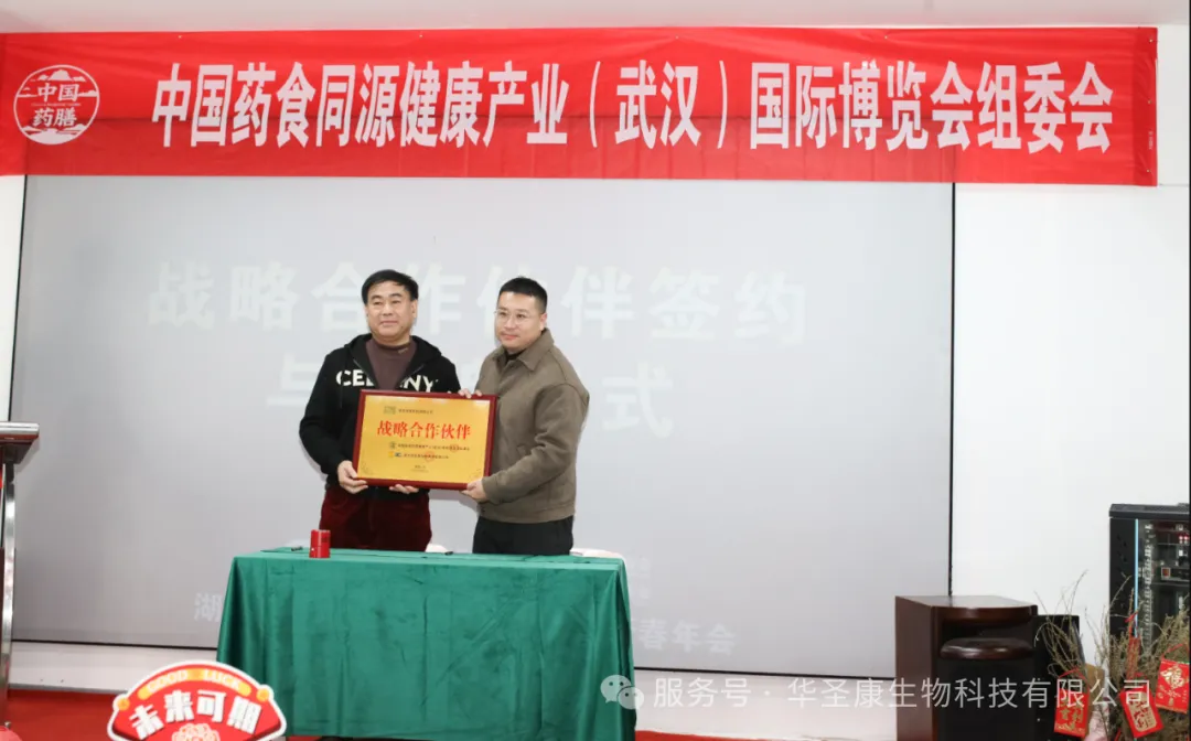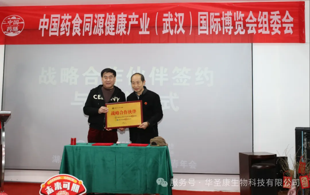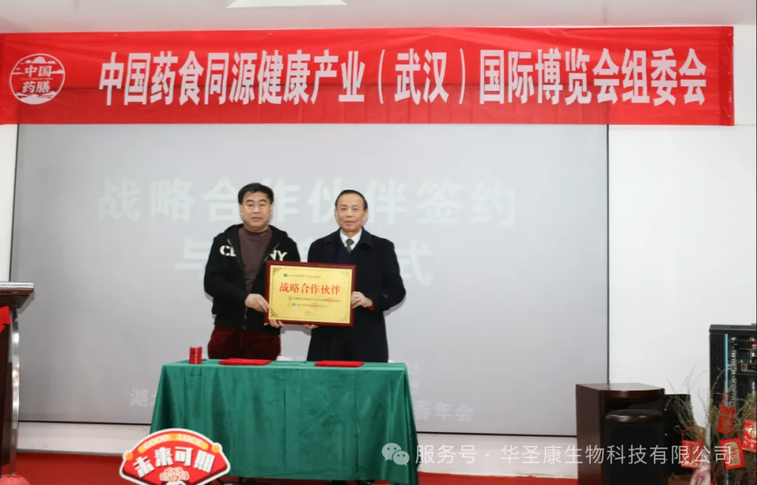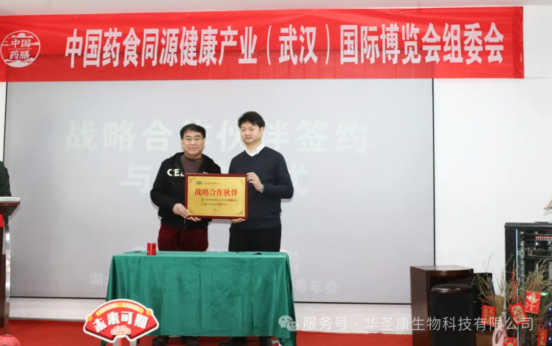 现场举行了隆重的战略合作签约授牌仪式。湖北华圣康生物科技有限公司董事长司正军代表组委会,向湖北省民营经济研究会、湖北省地理标志产品企业联合会、湖北中医一家人联盟、中国食文化河鲜委员会、中国旅游饭店烹饪协会药膳康养专委会、武汉头等舱科技股份有限公司、湖北将军红酿酒有限公司等来自省内外的十余家机构授予“战略合作伙伴”牌匾。此举标志着博览会产业协作网络进一步夯实,各方将围绕资源对接与平台共建展开深度合作,携手助力展会圆满成功。