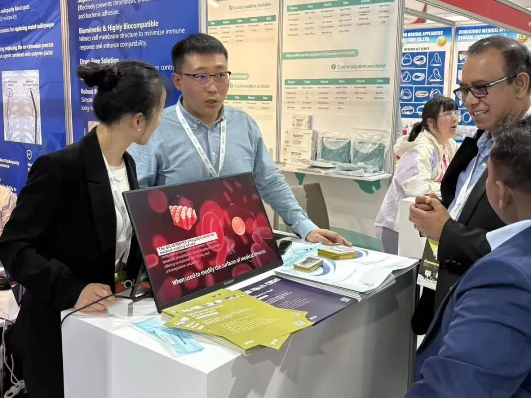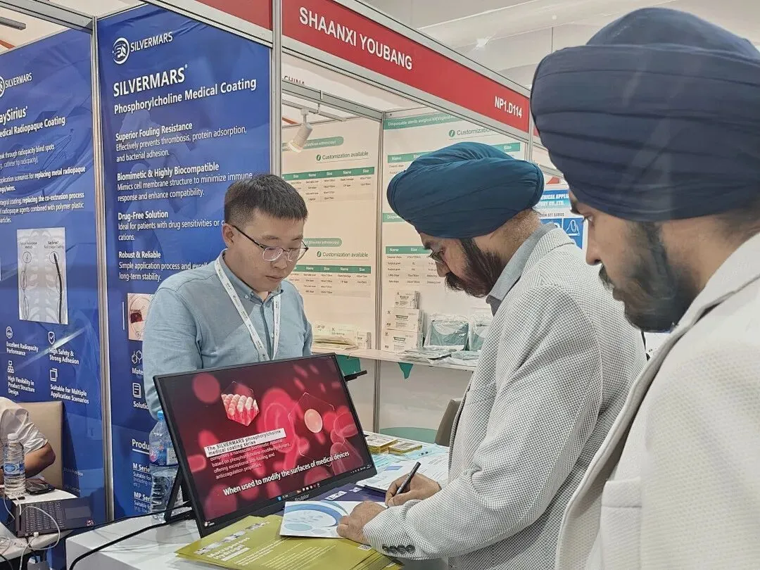 展会期间,银炙新材料展位来访客户较为集中,交流频繁。多位来自导管、介入器械与相关耗材方向的专业观众对我司两款涂层方案表现出浓厚兴趣,围绕涂层适配基材、工艺路径、应用场景与验证思路等进行了深入沟通,为后续合作奠定了良好基础。