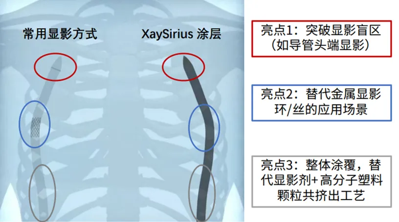 XaySirius® 显影系列涂层,面向影像可视化需求场景,具备良好的附着性能与生物相容性表现,可用于支持器械关键部位在成像中的识别与定位需求。