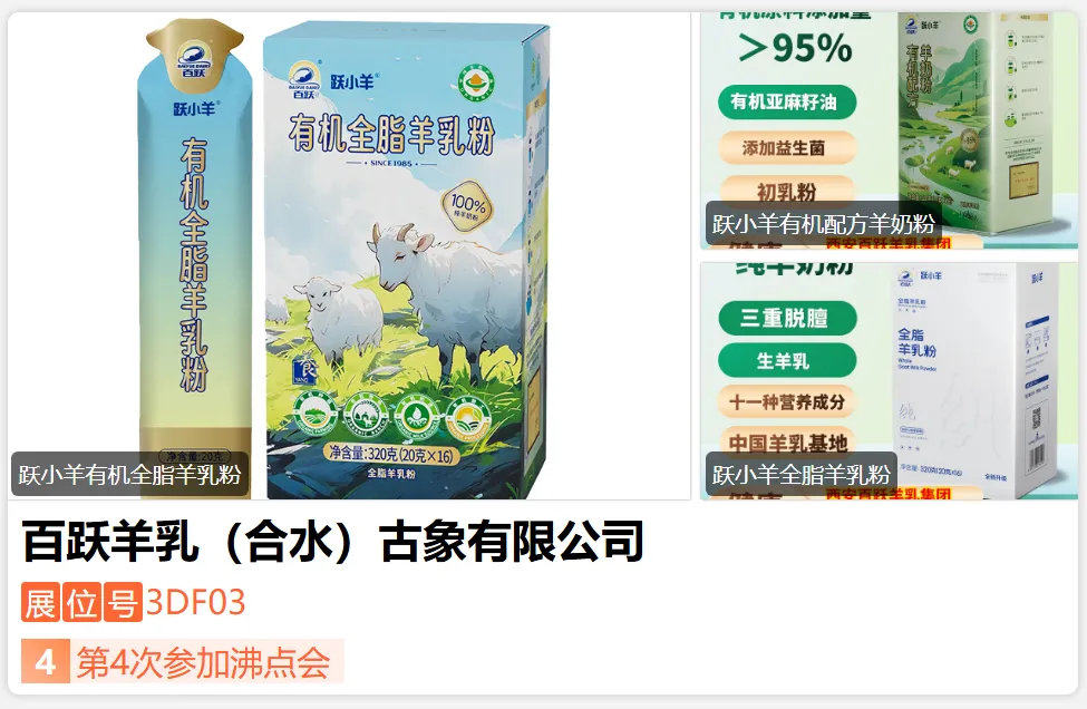 百跃羊乳集团始建于1985年,是集羊乳制品研发、生产、销售、服务及奶源基地建设于一体的全产业链现代企业集群,坐落于“陕西奶山羊基地”西安·阎良。已形成6大生产基地;20余种主营品牌;百跃羊乳集团联合生产车间占地面积23134 平方米,设计生产能力3万吨;其中,检验中心1500平方米,配备检验设备、仪器100多台。-展位号:3DC25-