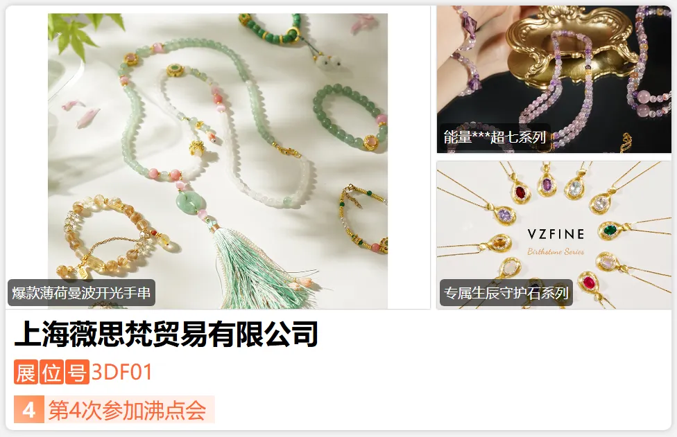时尚配饰品牌VZFINE,门店位于上海核心商圈新天地。品牌以***性设计打造精致珠宝。每件都源于设计师的独特灵感,被赋予***的灵魂,承载着创意与文化内涵,为女性生活带来优雅与美感!精选高品质天然水晶、半宝石等珍贵材质,精细打磨每件产品,确保每件饰品不仅具有审美品味也能兼具实用度和耐用性。另有美妆品牌 GEMSHO已热销全球多个国家,明星产品睫毛精华液已获众多明星及美妆节目推荐,是该类目的畅销单品。-展位号:3DJ03-