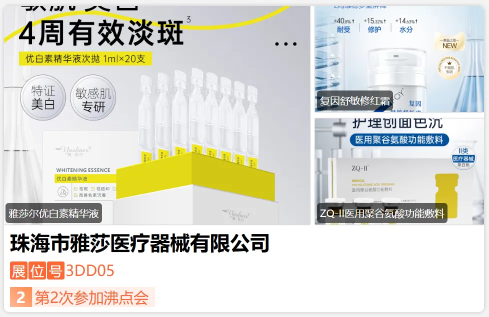 雅莎股份【皮肤科】功效型护肤品品牌以皮肤屏障修护为核心的上市公司,品牌【雅奇】【雅莎尔】【复因】【ZQ-II】;国家卫生部授予的“⽪肤屏障功能及医学护肤品研究基地”;10000+家公立医院皮肤科合作品牌。-展位号:3DE09-