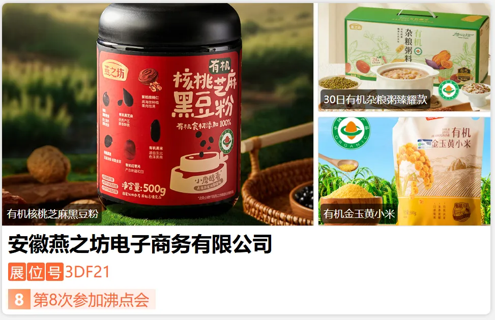 燕之坊,市场占有率***,连续6年成为中国粗粮***品牌、中国***,已经成为一个消费者信得过的严选品牌,一个满足中高端人群的消费升级品牌,从联合科研院所的专家对原产地的生态环境进行分析,进而选择优质品种,到种植方式、收储方式、初级加工的标准化,从原材料产品的开发,到食品、保健食品的配方研发。-展位号:3DK19-