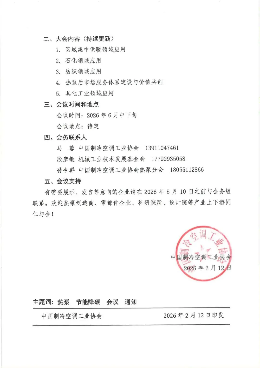 关于召开2026中国热泵行业年会暨节能降碳服务进企业——热泵技术装备推广应用大会的通知