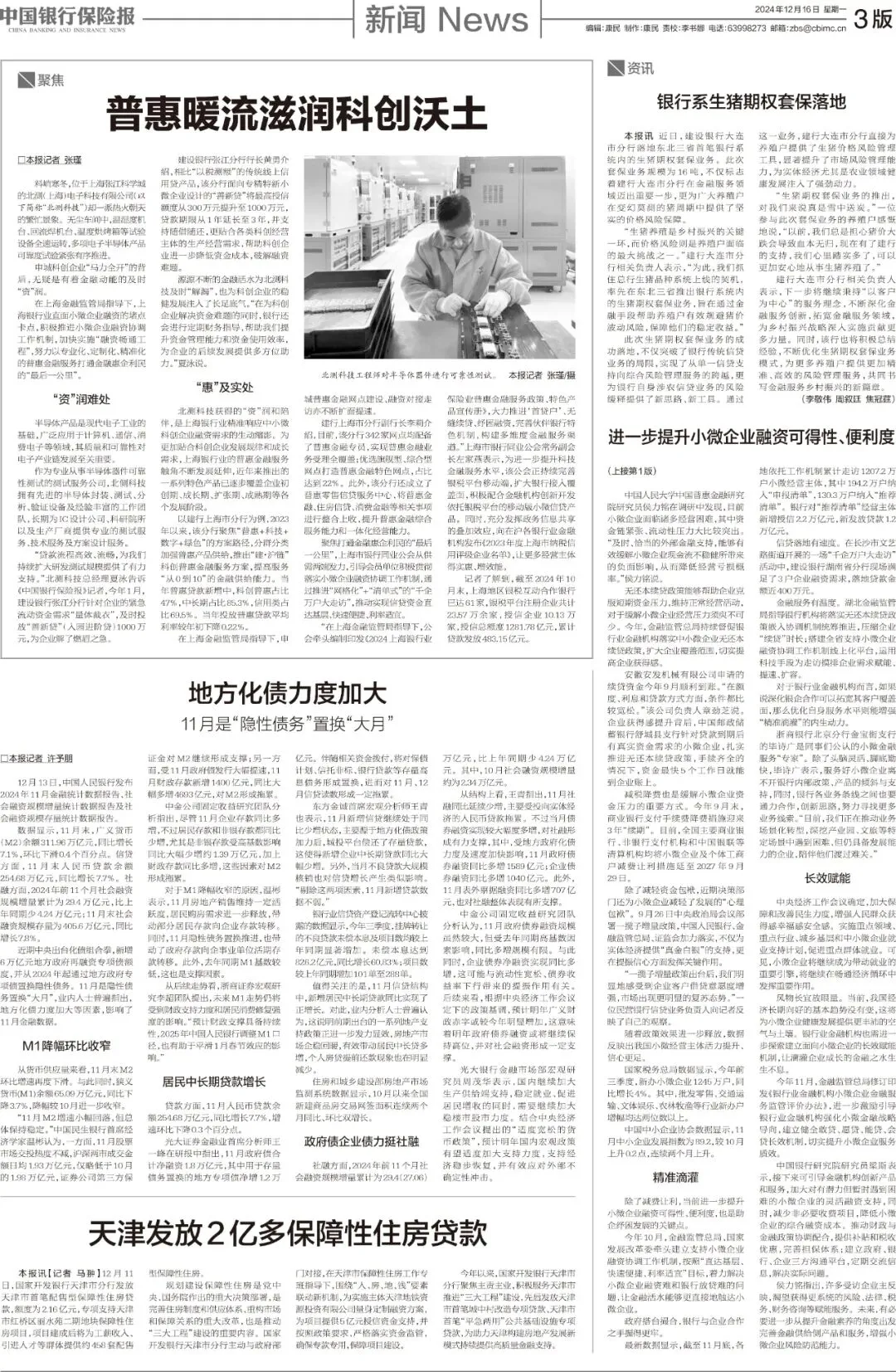 今年10月,金融监管总局、国家发展改革委牵头建立支持小微企业融资协调工作机制,按照“直达基层、快速便捷、利率适宜”目标,着力解决小微企业融资难和银行放贷难的问题,让金融活水能够更直接地触达小微企业。