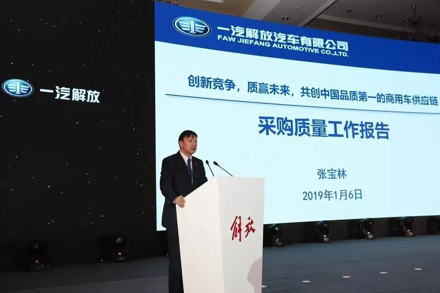 未来征途漫漫,解放持初心不改。针对2019年的采购工作,胡汉杰董事长做了重要的指示:2019年是一汽解放品牌战略落地实施的元年,品牌战略落地,是树立解放信心、坚定解放决心、保持解放恒心的力量源泉。商用车行业的竞争,既是整车企业之间的竞争,更是全产业链的竞争。采购生态的生机和未来,需要研发、质保、采购及在座的各位亲密伙伴齐心协力,共同以更长远的战略,更紧密的合作达成更高质量的效果。我们要以“信而有征、智勇双全、益行天下”的品牌理念,达成做最值得骄傲的商用车企业、最值得信赖的商用车品牌的愿景。