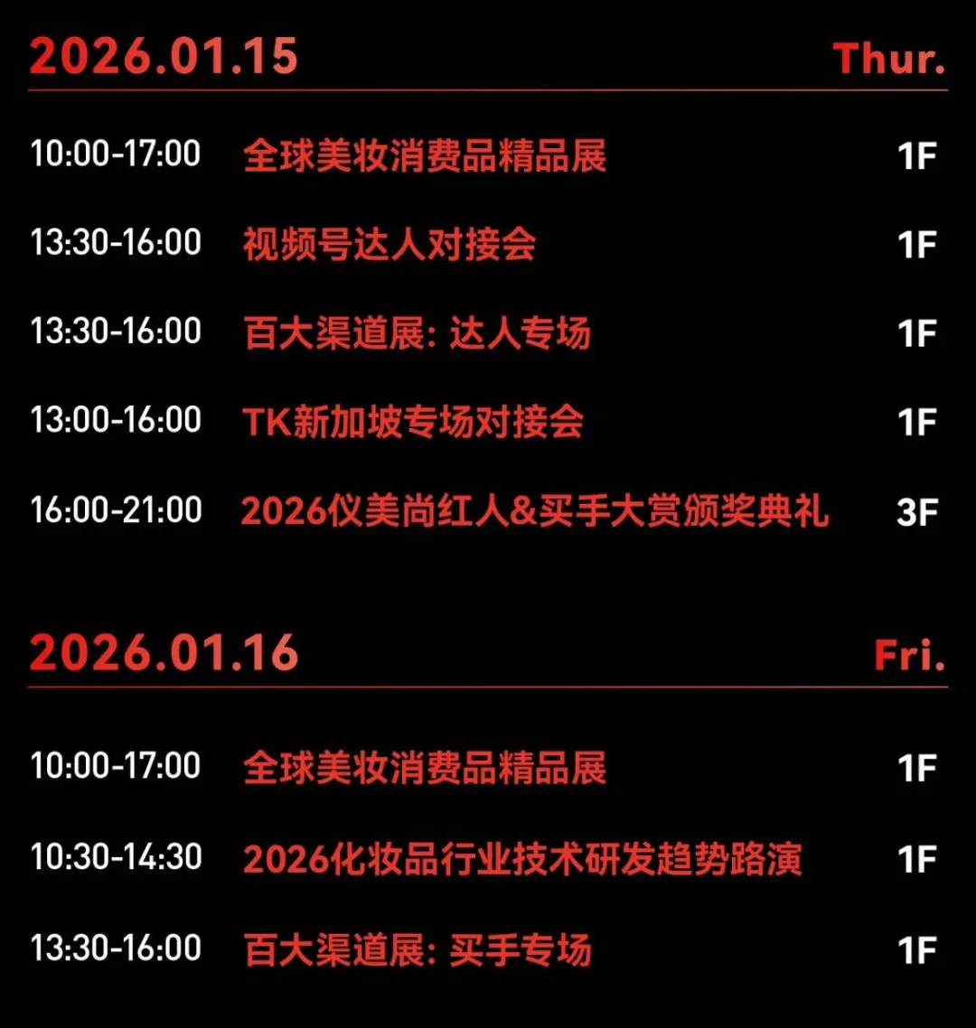 第十七届仪美尚消费品博览会暨红人节&买手节已经火热开启,这场行业盛会正在等待您的加入。以上这份逛展指南希望能帮助您轻松玩转展会,发现更多美好与惊喜。品牌展的开放时间为1月15日—16日的上午10点至下午17点,请您提前安排好行程,收藏这份逛展指南,开启一场难忘的消费盛宴。期待在展会现场与您相遇,共同见证这场行业的精彩盛会!