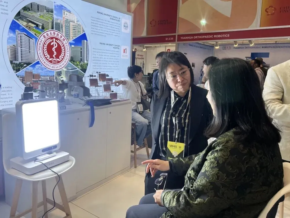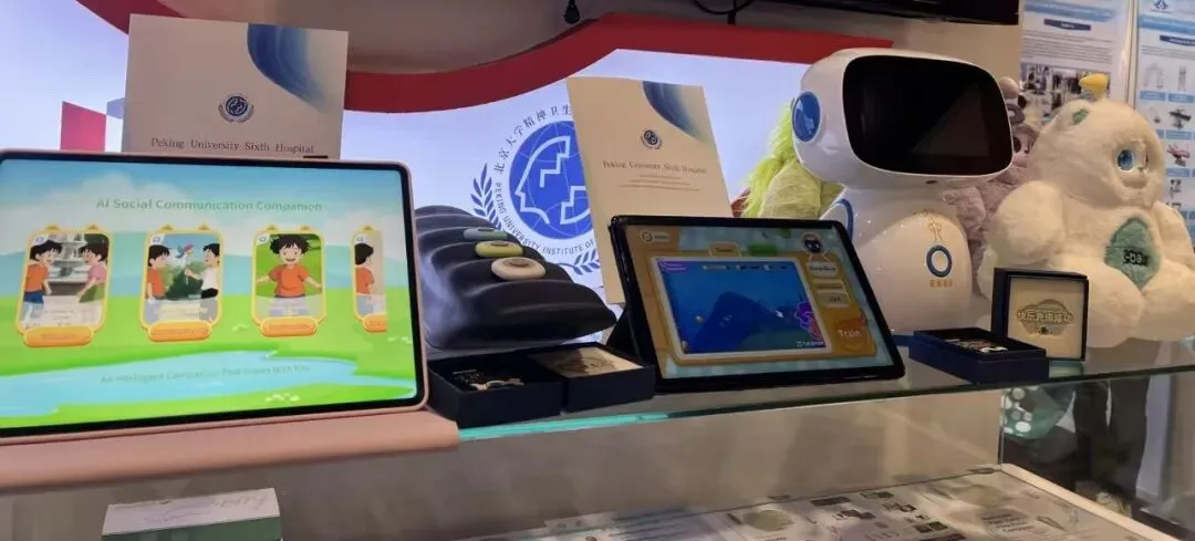 展会上,北大六院展示了一批兼具交互性、精准性与实用性的创新设备,用科技为精神卫生事业发展注入创新力量。心宝(X-bell)心理支持系统,构建实时情感交互引擎,实现与低龄儿童自然语言沟通和情绪反馈,提供专业心理陪伴;光照治疗仪操作简便、起效迅速,具有无创伤、使用场地灵活的优势,对改善抑郁情绪有确切效果;麦蜜喜乐(Myme Merry)针对儿童青少年用户,把心理学知识游戏化,让用户在安全的游戏环境中降低心理防御机制,实现自我成长;儿童认知行为训练系统软件,基于深度学习算法构建多维度认知训练模型,制定精准化、可居家实施的认知康复方案;孤独症群体数字干预软件,融合大语言模型,通过情景模拟、社交训练等交互式场景,改善社交沟通能力与认知功能;ADHD(注意缺陷多动障碍)友好型产品,融合运动和情绪舒缓设计,通过注意力软性转移,减少情绪波动并保持身心平和;个性化经颅磁刺激(rTMS)治疗平台,构建个体化治疗参数预测模型,显著提升抑郁症、精神分裂症等疾病的治疗应答率与安全性。这些凝聚“六院智慧”与“北医力量”的创新成果,吸引了众多海内外同行交流探讨。