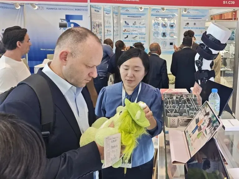 参展期间,北大六院代表与多国医疗专家交流分享技术研发和临床应用经验,还随团参访了克利夫兰诊所阿布扎比院区等当地顶级医疗机构,学习国际化医疗服务模式,探讨创新技术在中东地区的临床验证、技术培训等合作可能,为后续国际合作奠定基础。