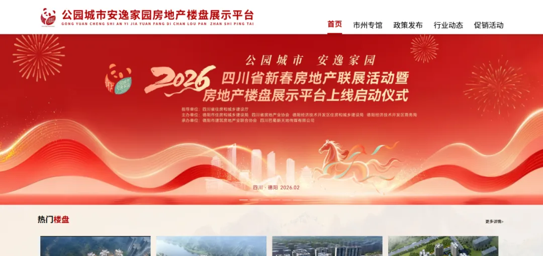 四川省举办“公园城市·安逸家园”新春房地产联展活动,将持续至2026年3月,在德阳市设置主会场,其余20个市(州)均设立分会场并结合当地实际组织开展形式多样的房交会、城市推介、政策宣传、跨界联动等促销活动。