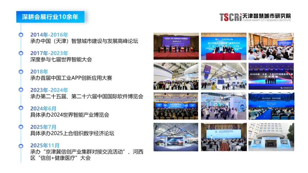 多年来,我院高质量执行2024世界智能产业博览会、2025上合组织数字经济论坛,承办第二十五届及第二十六届中国国际软件博览会,深度参与世界智能大会。国际合作方面,与西班牙巴塞罗那展览中心、英国联域创新推进中心等国际机构签署合作协议,建立长期稳定的合作关系,积极推动行业交流与国际间产业协作。