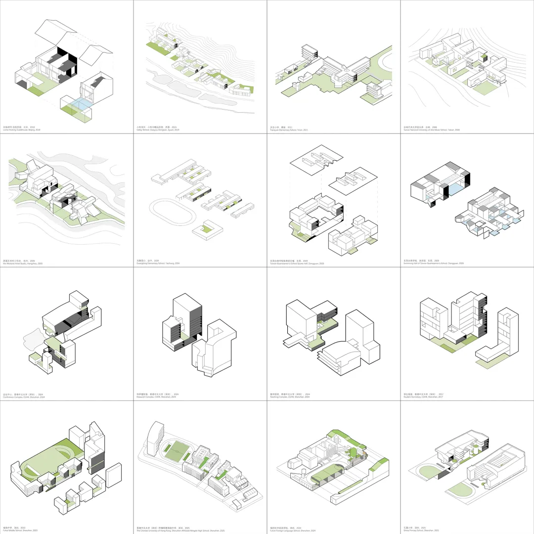 “城乡校园”探讨合院主义作为跨文化空间原型:合院,在当代高密度城市,如何发展为一种多层立体城市空间系统,协调建筑的空间尺度与自然景观。透过研究室近年完成的校园设计包括香港中文大学(深圳),深圳石厦小学、明德高中、福海中学、福田外国语学校以及松阳丽水学院,展览进一步探讨合院主义作为一种类型学的剖面设计方法,如何通过叠加与交错、围合与连接、序列与过渡、大树与水塘,形成有效的空间策略,维系建筑的人本和生态环境的可持续。