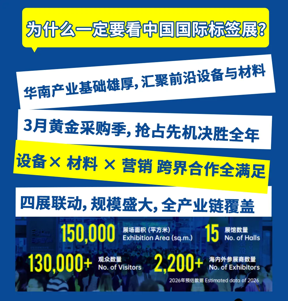 我们诚挚邀请您预先登记,莅临中国国际标签展(SINO-LABEL)2026,开启您的破局之旅,用3天时间,赢得全年先机!