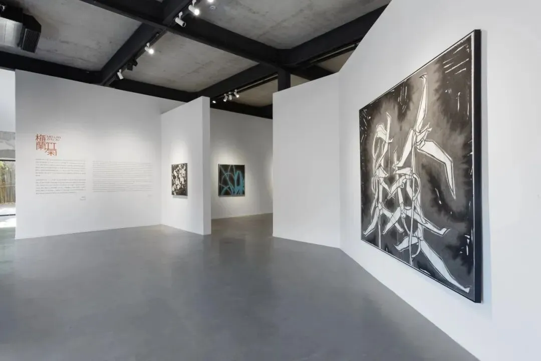 回到展览,为什么是梅、兰、竹、菊?黄丹还是想在一个我们都非常熟悉的绘画母题上展开。可以看到,黄丹在创作上首先从带有写生感的自然生长的梅、兰、竹、菊开始。自然万物,其自然形态往往是最完美的。