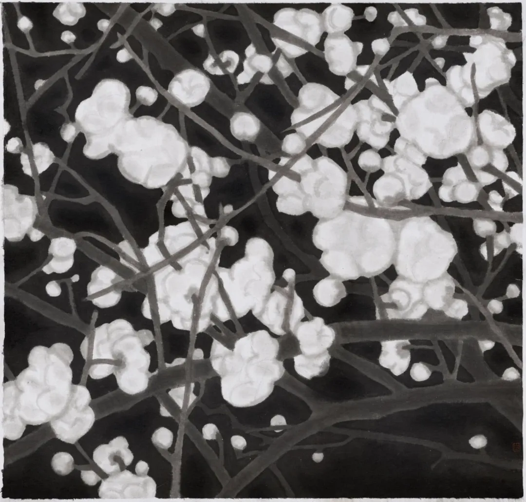 事实上,任何观众都不可能忘记梅、兰、竹、菊的象征义,这就会在观看中形成有意思的对抗。我们是否能够回到单纯的观看,回到凝视本身?不管怎样,黄丹都试图让我们离开一个业已庸俗的文化语境去重新观看,是纯视觉的观,去感受物之象,而不是懒惰地依赖历史文化经验遮蔽双眼。