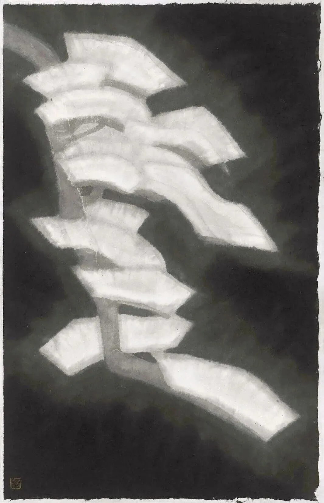 熟悉黄丹创作方法的人就知道,她是用积墨法一点一点用极淡的墨色勾勒和晕染,整个过程非常漫长,其内在逻辑不是绘画性亦非表现性,而是塑造性,是雕塑,是结构和空间。