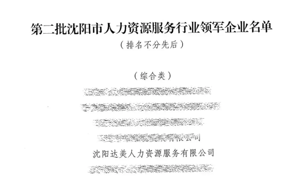 热烈祝贺沈阳达美人力资源服务有限公司荣膺“第二批沈阳市人力资源服务行业领军企业”荣誉称号!